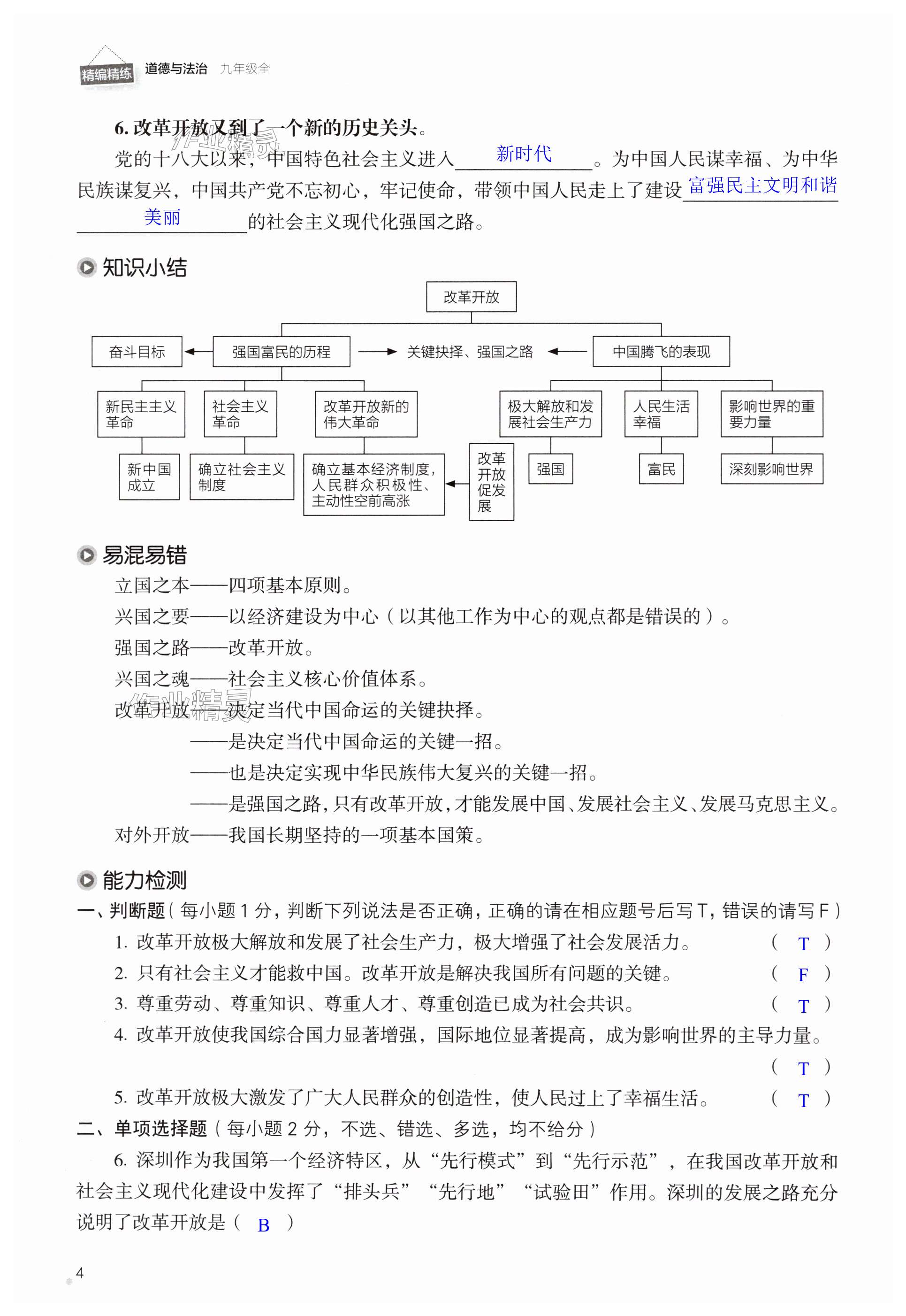 注:目前有些书本章节名称可能整理的还不是很完善,但都是按照顺序排列的,请同学们按照顺序仔细查找。练习册 2024年精编精练浙江教育出版社九年级道德与法治全一册人教版 答案主要是用来给同学们做完题方便对答案用的,请勿直接抄袭。