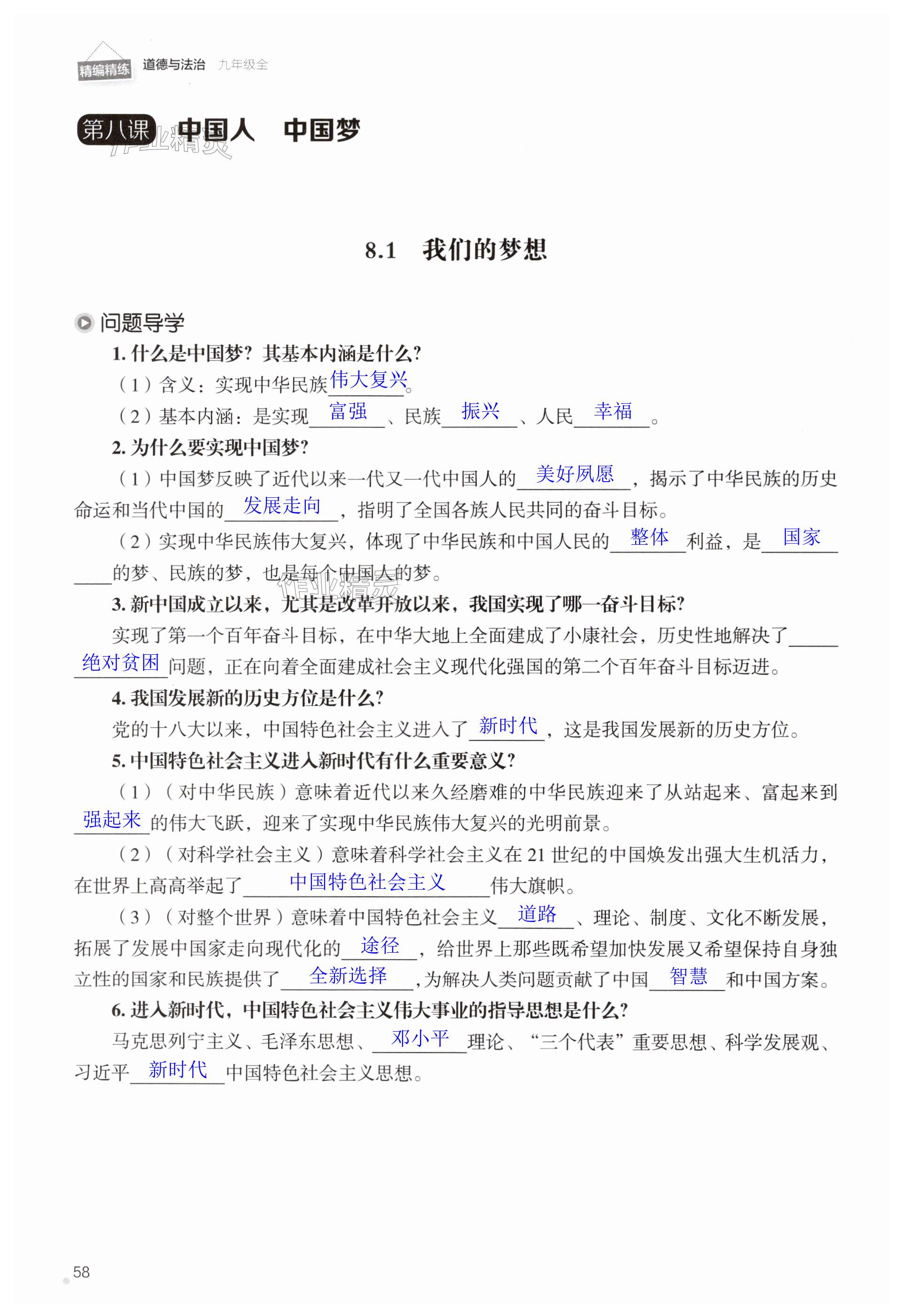 注:目前有些书本章节名称可能整理的还不是很完善,但都是按照顺序排列的,请同学们按照顺序仔细查找。练习册 2024年精编精练浙江教育出版社九年级道德与法治全一册人教版 答案主要是用来给同学们做完题方便对答案用的,请勿直接抄袭。