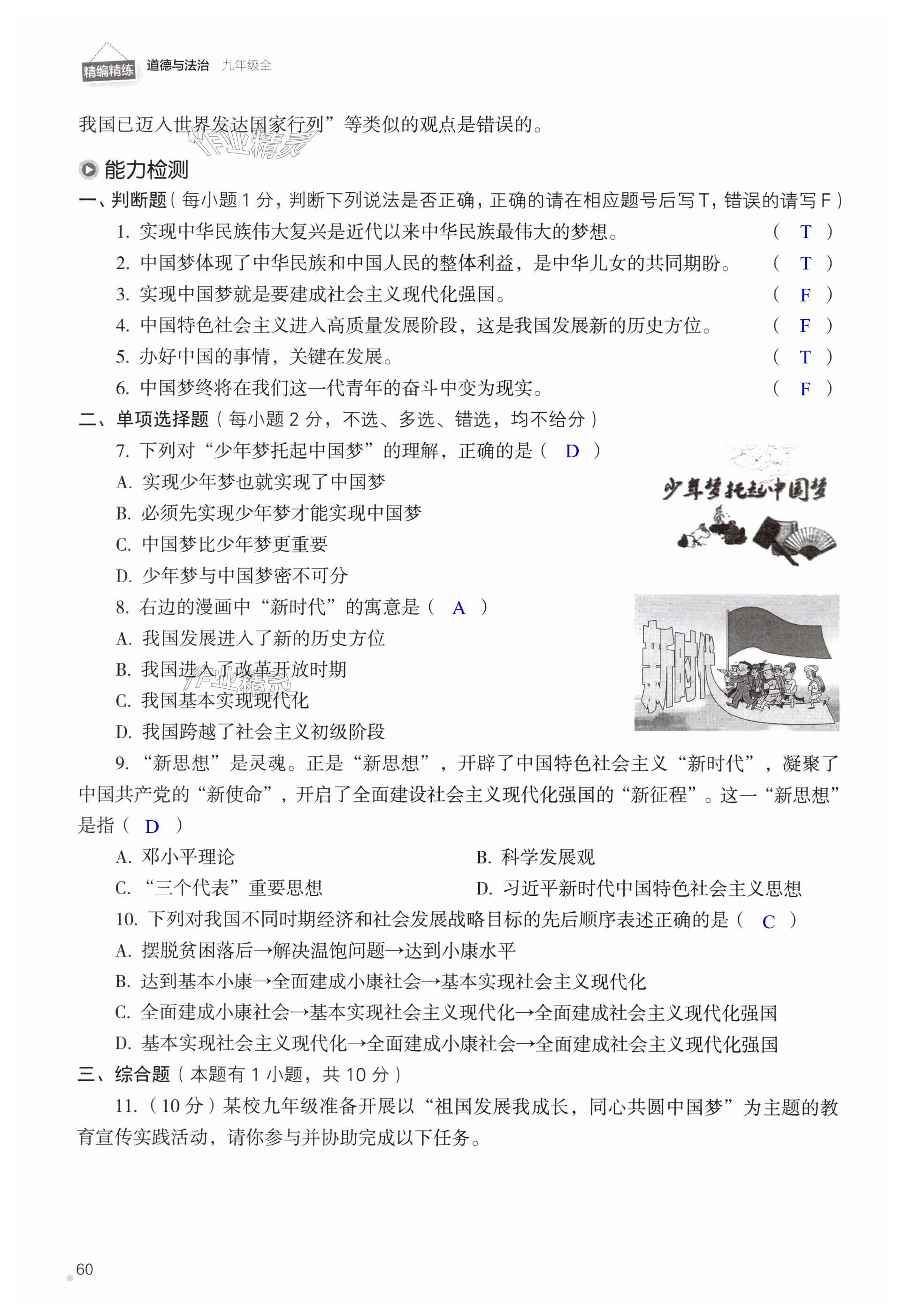 注:目前有些书本章节名称可能整理的还不是很完善,但都是按照顺序排列的,请同学们按照顺序仔细查找。练习册 2024年精编精练浙江教育出版社九年级道德与法治全一册人教版 答案主要是用来给同学们做完题方便对答案用的,请勿直接抄袭。