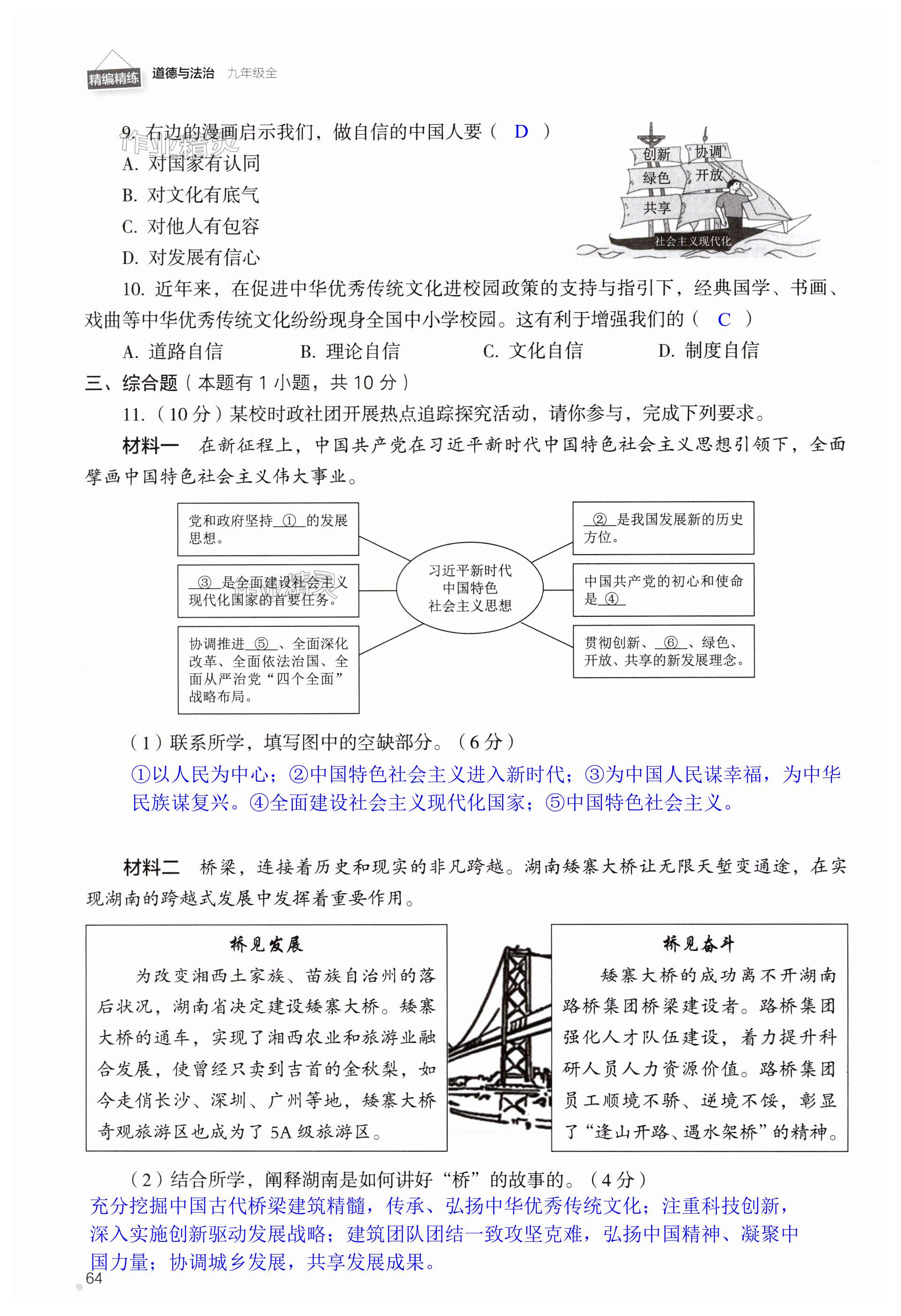 注:目前有些书本章节名称可能整理的还不是很完善,但都是按照顺序排列的,请同学们按照顺序仔细查找。练习册 2024年精编精练浙江教育出版社九年级道德与法治全一册人教版 答案主要是用来给同学们做完题方便对答案用的,请勿直接抄袭。