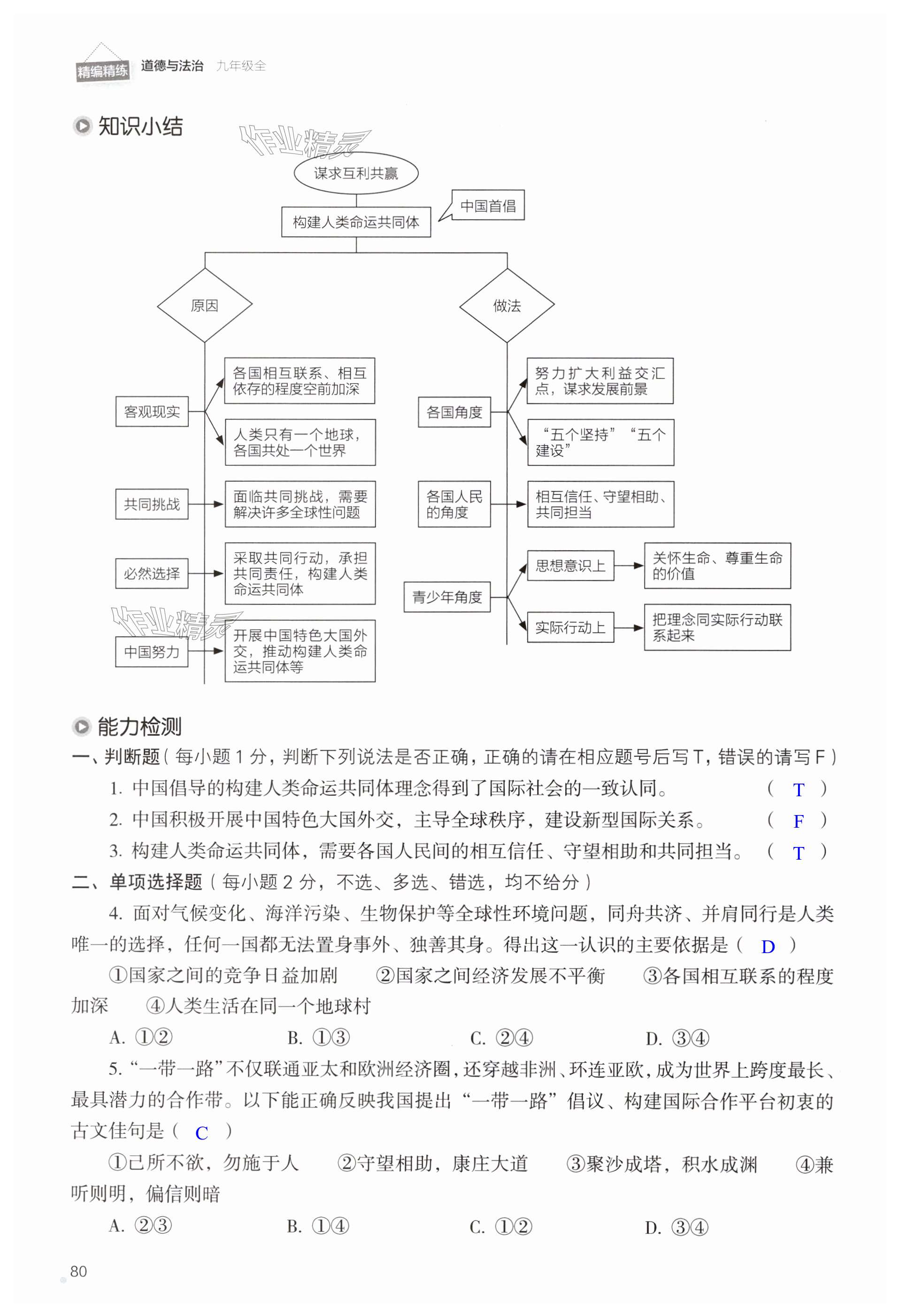 注:目前有些书本章节名称可能整理的还不是很完善,但都是按照顺序排列的,请同学们按照顺序仔细查找。练习册 2024年精编精练浙江教育出版社九年级道德与法治全一册人教版 答案主要是用来给同学们做完题方便对答案用的,请勿直接抄袭。