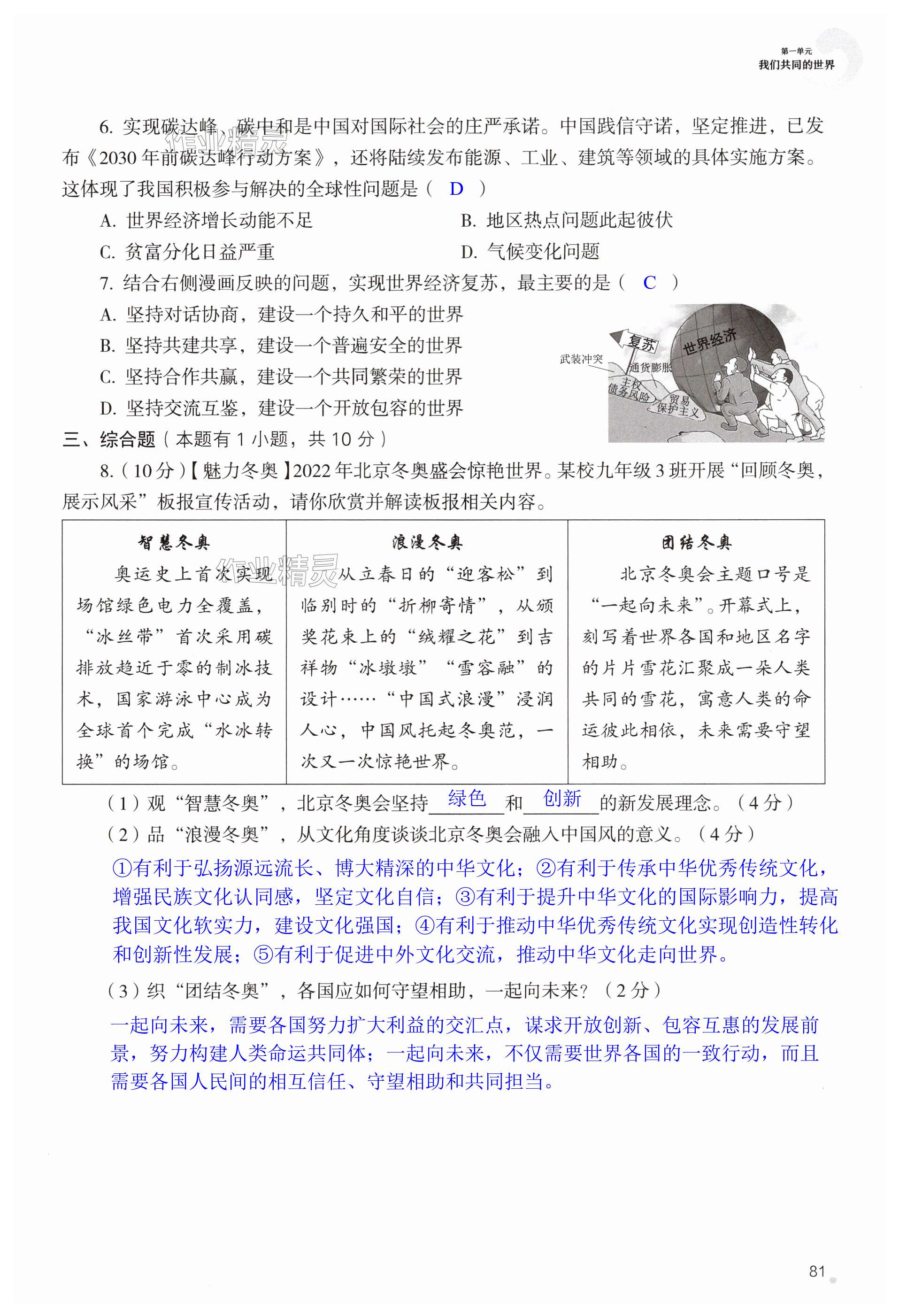 注:目前有些书本章节名称可能整理的还不是很完善,但都是按照顺序排列的,请同学们按照顺序仔细查找。练习册 2024年精编精练浙江教育出版社九年级道德与法治全一册人教版 答案主要是用来给同学们做完题方便对答案用的,请勿直接抄袭。