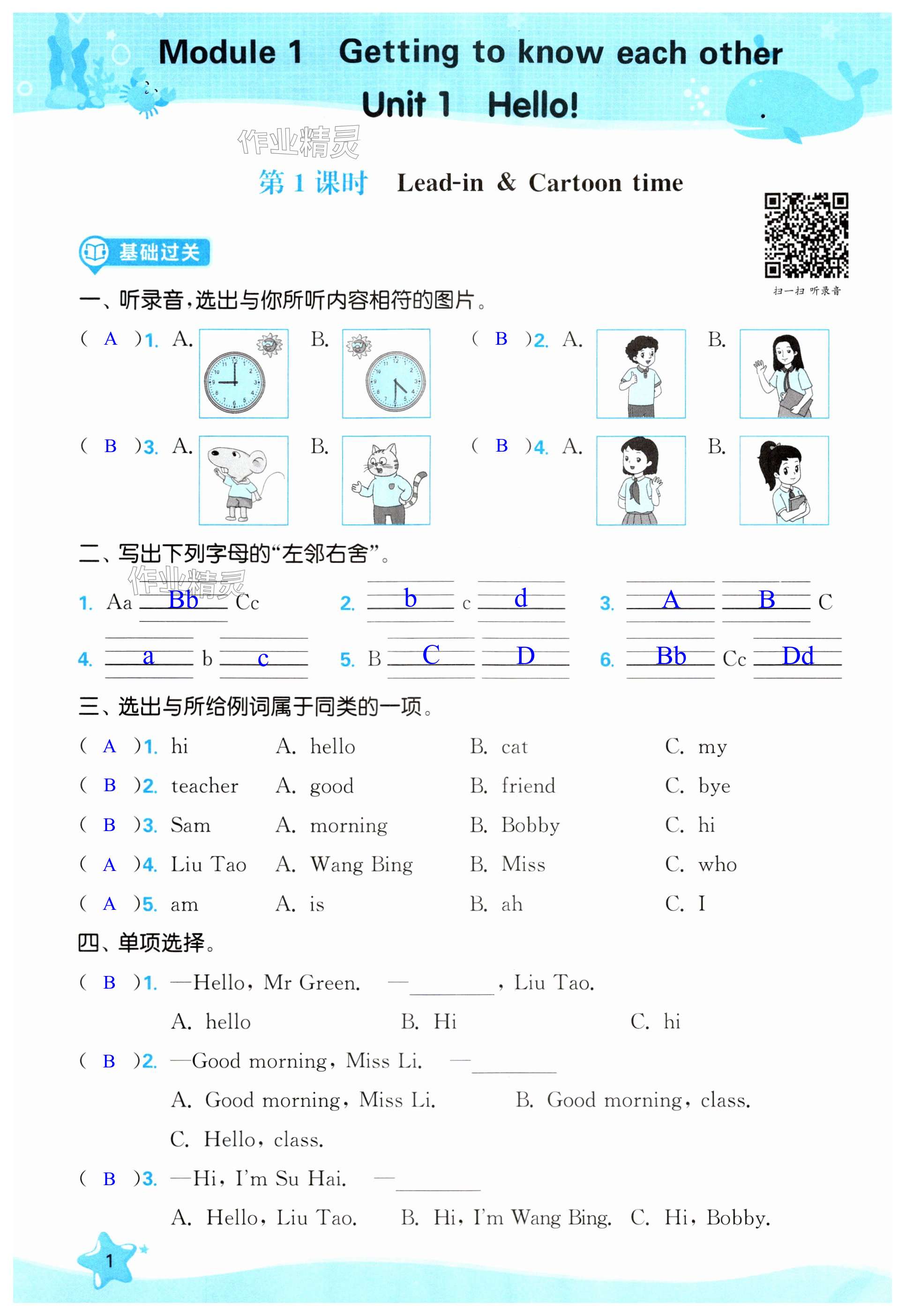 注:目前有些书本章节名称可能整理的还不是很完善,但都是按照顺序排列的,请同学们按照顺序仔细查找。练习册 2024年金色课堂课时作业本三年级英语上册江苏版提优版 答案主要是用来给同学们做完题方便对答案用的,请勿直接抄袭。