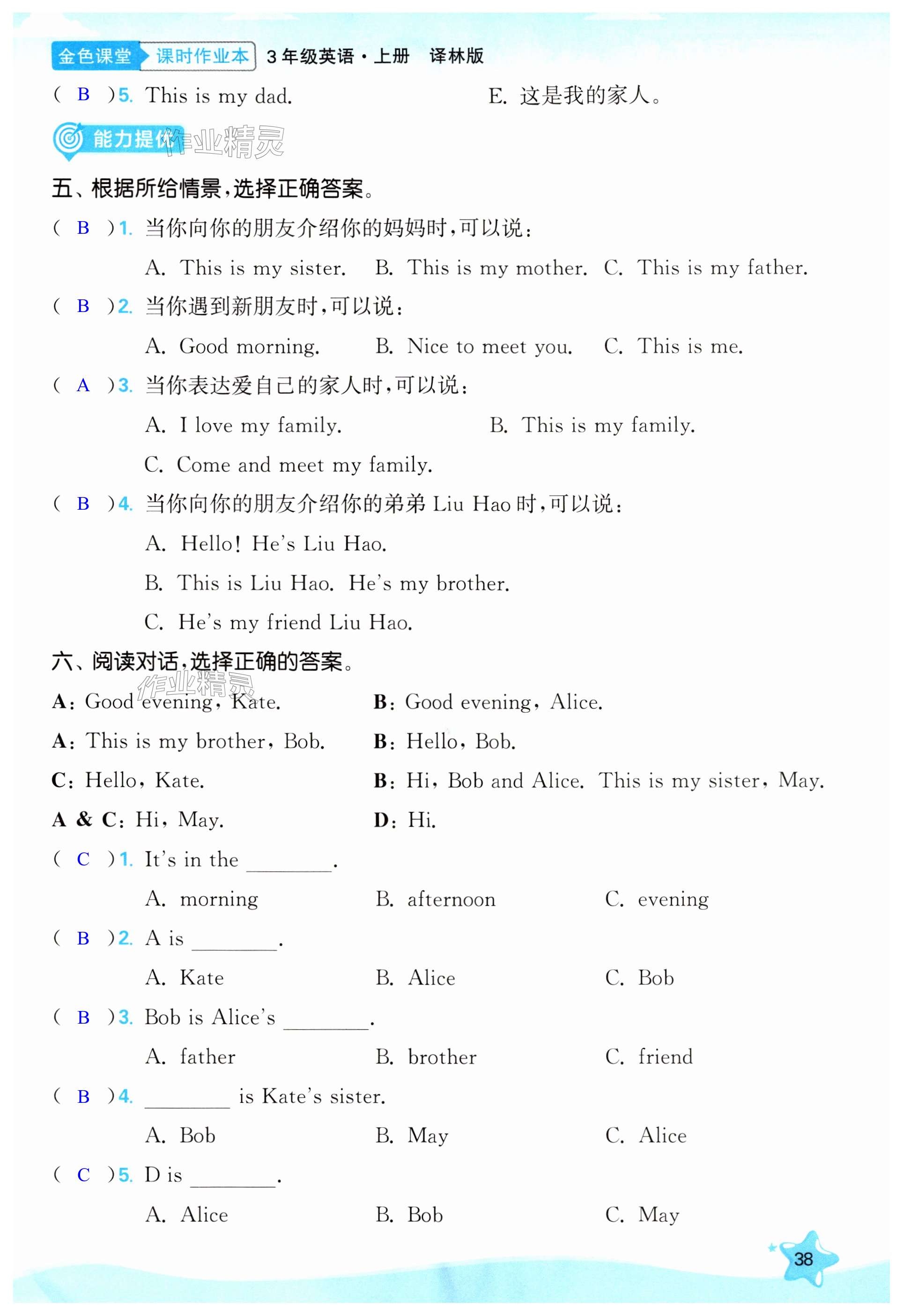 注:目前有些书本章节名称可能整理的还不是很完善,但都是按照顺序排列的,请同学们按照顺序仔细查找。练习册 2024年金色课堂课时作业本三年级英语上册江苏版提优版 答案主要是用来给同学们做完题方便对答案用的,请勿直接抄袭。