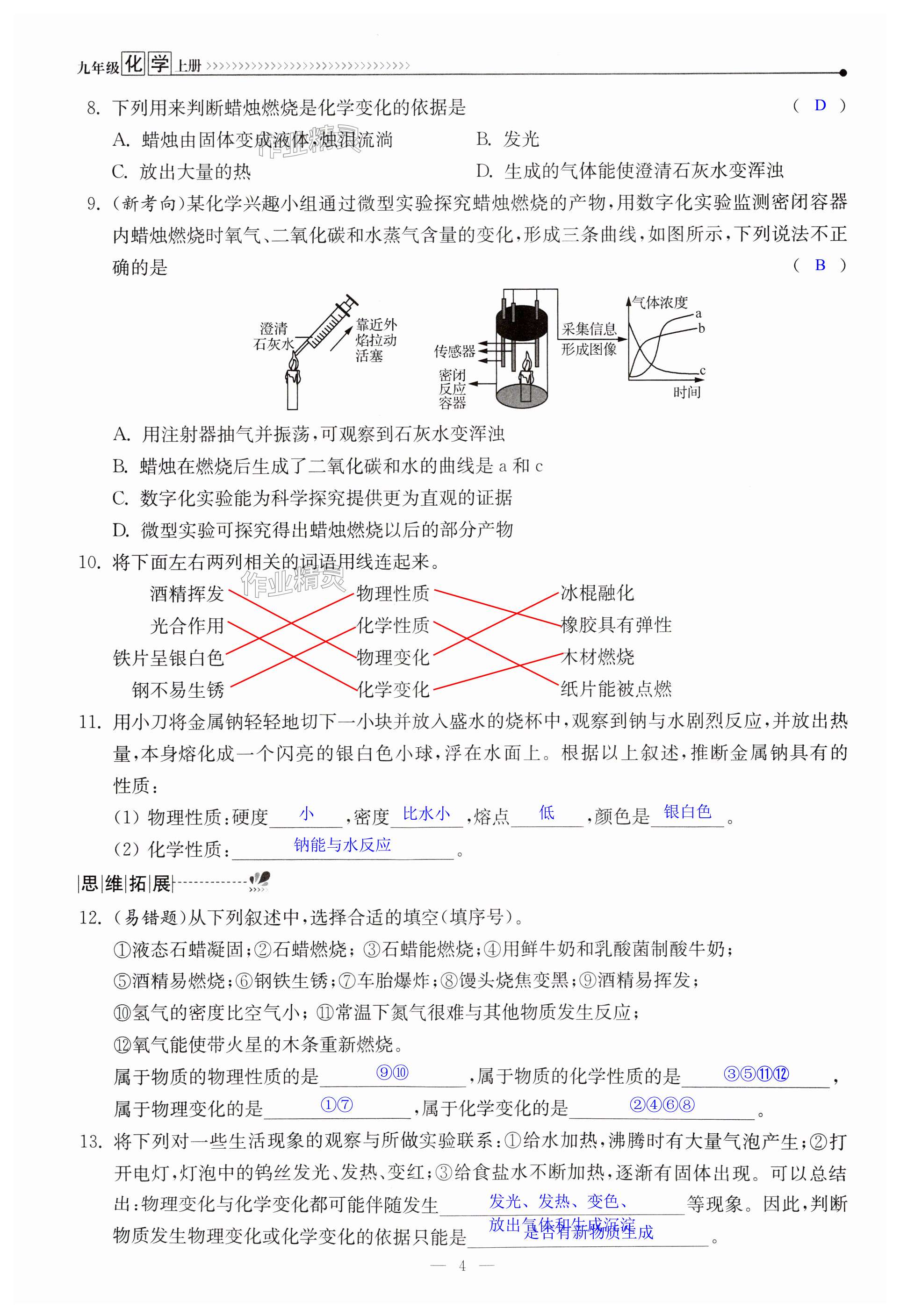 注:目前有些书本章节名称可能整理的还不是很完善,但都是按照顺序排列的,请同学们按照顺序仔细查找。练习册 2024年南通小题课时提优作业本九年级化学上册沪教版 答案主要是用来给同学们做完题方便对答案用的,请勿直接抄袭。