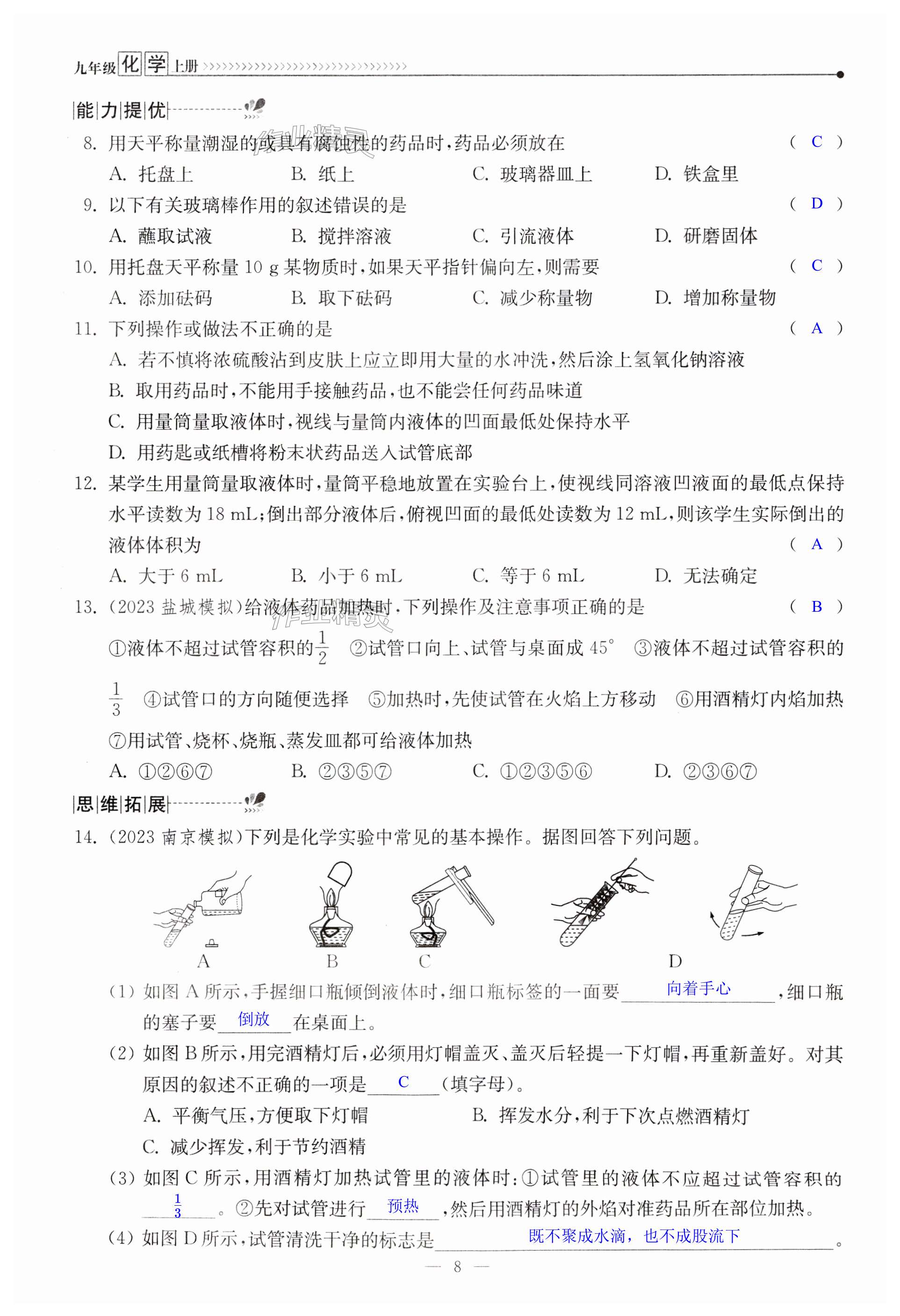 注:目前有些书本章节名称可能整理的还不是很完善,但都是按照顺序排列的,请同学们按照顺序仔细查找。练习册 2024年南通小题课时提优作业本九年级化学上册沪教版 答案主要是用来给同学们做完题方便对答案用的,请勿直接抄袭。