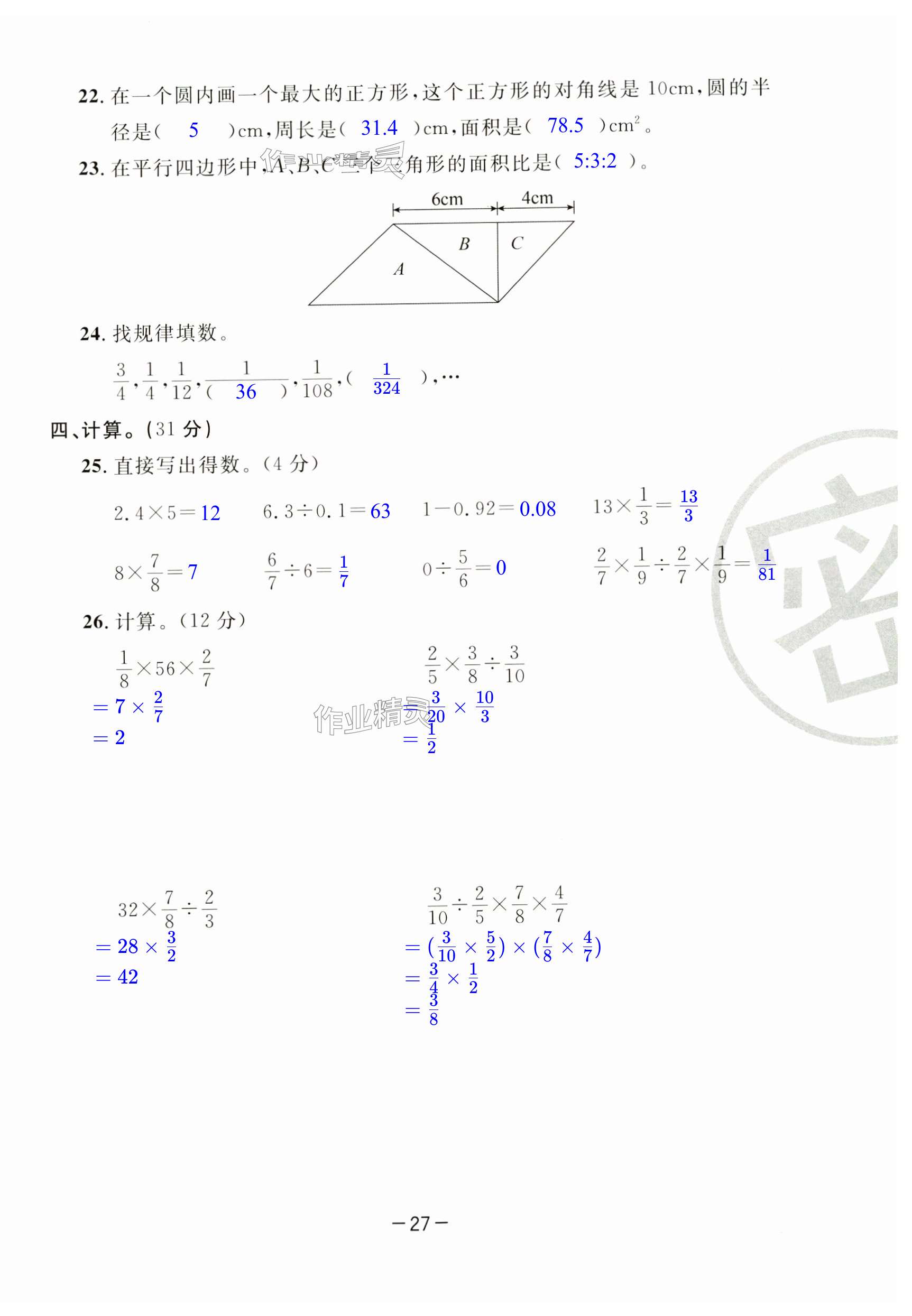 注:目前有些书本章节名称可能整理的还不是很完善,但都是按照顺序排列的,请同学们按照顺序仔细查找。练习册 2024年高思全能卷六年级数学上册西师大版 答案主要是用来给同学们做完题方便对答案用的,请勿直接抄袭。