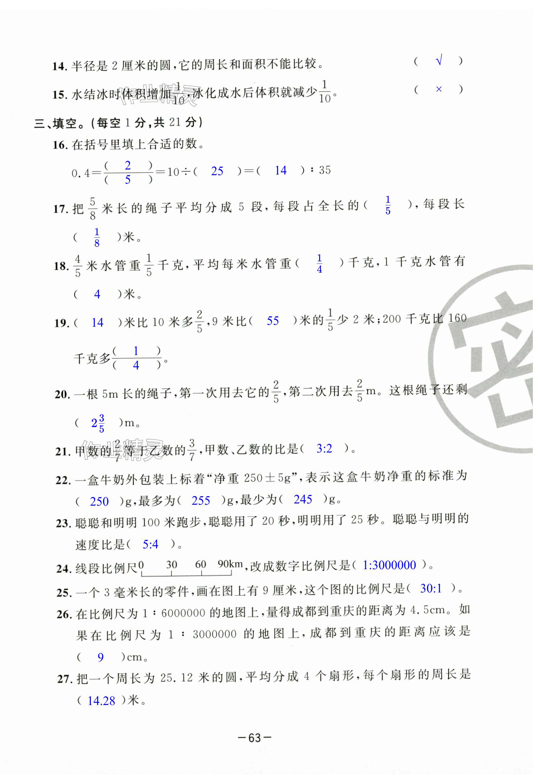 注:目前有些书本章节名称可能整理的还不是很完善,但都是按照顺序排列的,请同学们按照顺序仔细查找。练习册 2024年高思全能卷六年级数学上册西师大版 答案主要是用来给同学们做完题方便对答案用的,请勿直接抄袭。