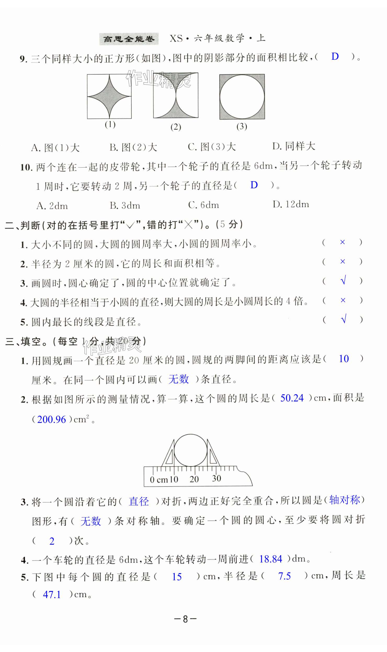 注:目前有些书本章节名称可能整理的还不是很完善,但都是按照顺序排列的,请同学们按照顺序仔细查找。练习册 2024年高思全能卷六年级数学上册西师大版 答案主要是用来给同学们做完题方便对答案用的,请勿直接抄袭。