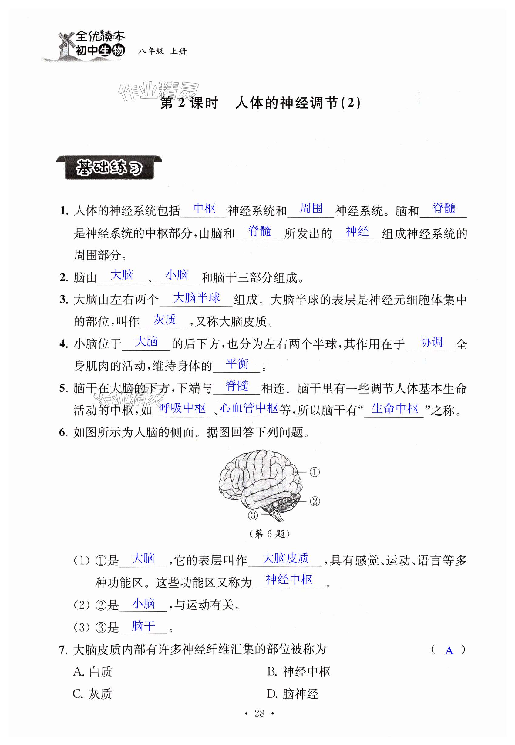 注:目前有些书本章节名称可能整理的还不是很完善,但都是按照顺序排列的,请同学们按照顺序仔细查找。练习册 2024年全优读本八年级生物上册苏科版 答案主要是用来给同学们做完题方便对答案用的,请勿直接抄袭。