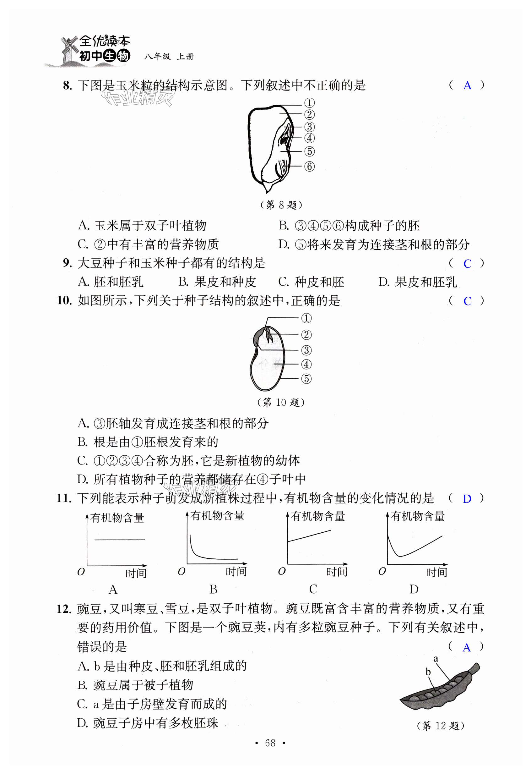 注:目前有些书本章节名称可能整理的还不是很完善,但都是按照顺序排列的,请同学们按照顺序仔细查找。练习册 2024年全优读本八年级生物上册苏科版 答案主要是用来给同学们做完题方便对答案用的,请勿直接抄袭。