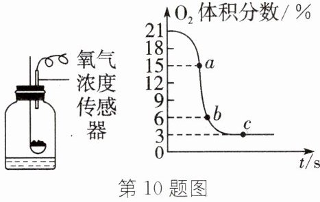 10. (2023·衡阳)某兴趣小组利用氧气传感器来检测足量红磷燃烧过程中氧气的含量,如图所示。下列判断正确的是( )