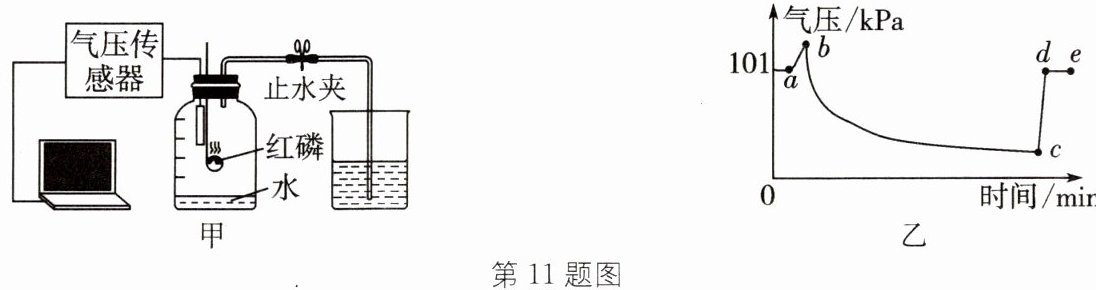 11. 用图甲所示装置探究空气中氧气的含量,测得实验过程中气压随时间的变化关系如图乙所示。