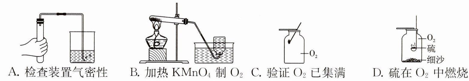 3. 实验室用 $ {KMnO_{4}} $ 制氧气并验证氧气的性质,下列操作正确的是( )
