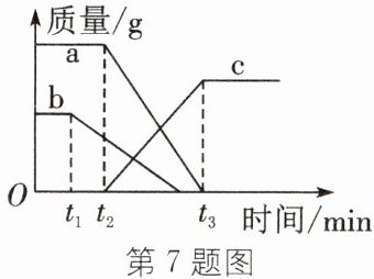 7. 某同学误将少量 $ {KMnO_{4}} $ 当成 $ {MnO_{2}} $ 加入 $ {KClO_{3}} $ 中进行加热制取氧气,部分物质质量随时间变化如图所示。下列关于该过程的说法正确的是( )