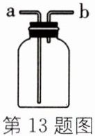 13. 如图所示装置,若用于收集 $ {O_{2}} $,$ {O_{2}} $ 应从该装置的______(填“a”或“b”)端通入,验满的方法是______;若用排水法收集氧气,应先在集气瓶中______,然后从______(填“a”或“b”)端通入氧气。