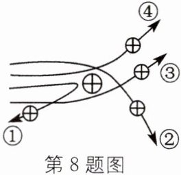8. 1911年英国科学家卢瑟福进行了著名的α粒子轰击金属箔实验。当α粒子轰击金属箔时,如图所示的运动轨迹全部错误的是( )