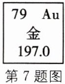 7. (2023·泰州)金纳米粒子可催化某些化学反应,金元素在元素周期表中的相关信息如图所示。下列说法正确的是( )