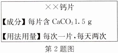 2. 某品牌补钙药品的部分说明书如图所示。按照说明书服用的人每天最多能从药品中吸收的钙元素的质量是( )