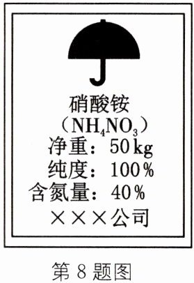 8. 某同学发现张大爷家菜园中的蔬菜生长迟缓,便帮他购买了一包化肥,如图为该包化肥的外包装标签上的部分说明,请仔细阅读标签并回答下列问题(商品的标签或说明书上常用质量分数来表示某物质的成分或纯度)。