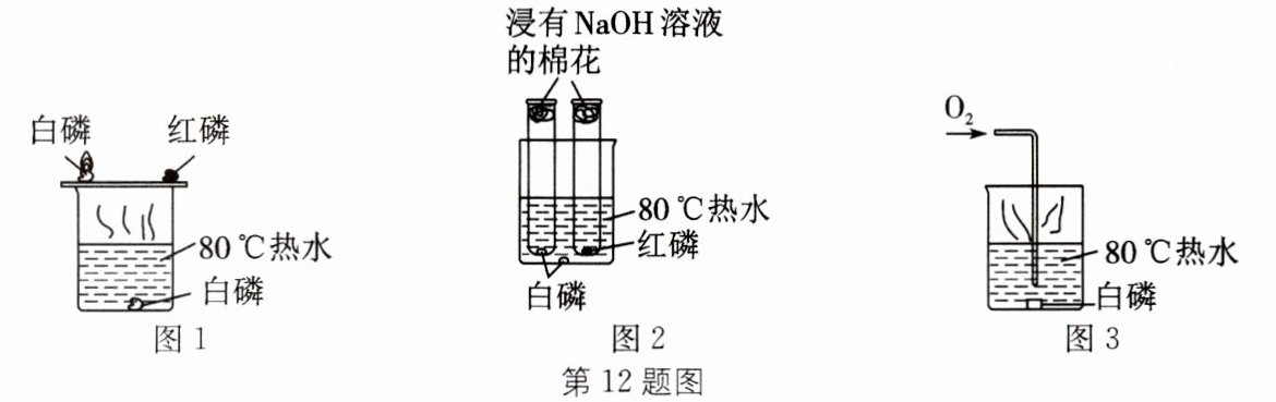 12. 下图为探究燃烧条件的实验装置。(已知白磷有毒,且燃烧时产生的 $P_{2}O_{5}$ 对环境有污染)