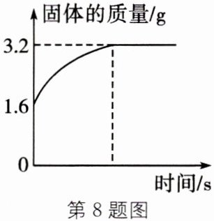 8. 在装满氧气的密闭装置中,放入一定量的白磷。测得在反应过程中,固体的质量变化与时间关系如图所示。试求: