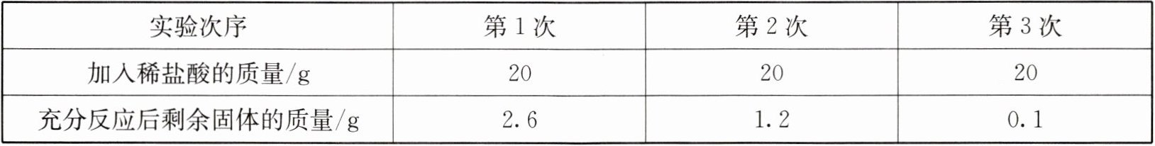 |充分反应后剩余固体的质量${/g}$|$2.6$|$1.2$|$0.1$|