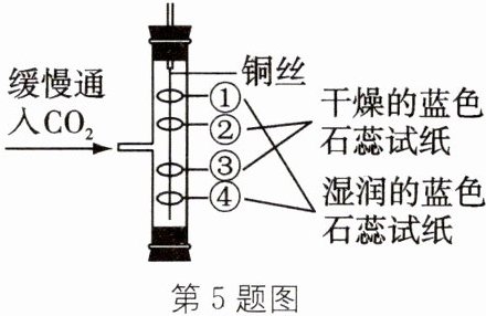 5. 如图是某同学为探究二氧化碳性质进行的实验,实验中观察到的现象是______比______变红的速度快,此实验可得出二氧化碳具有的性质是______。