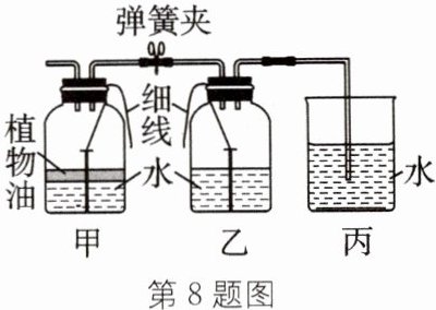 8. 如图所示,将两枚光亮的铁钉分别用细线吊置于甲、乙中,并使部分铁钉露出液面。放置一段时间,出现了锈蚀。下列说法不正确的是( )