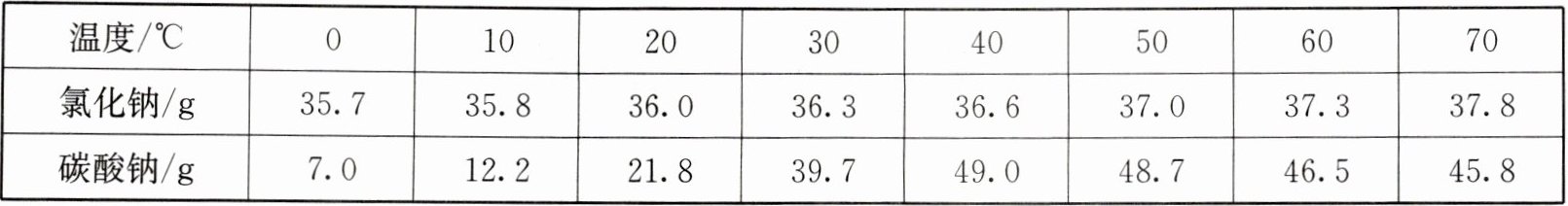 | 氯化钠/g | 35.7 | 35.8 | 36.0 | 36.3 | 36.6 | 37.0 | 37.3 | 37.8 |