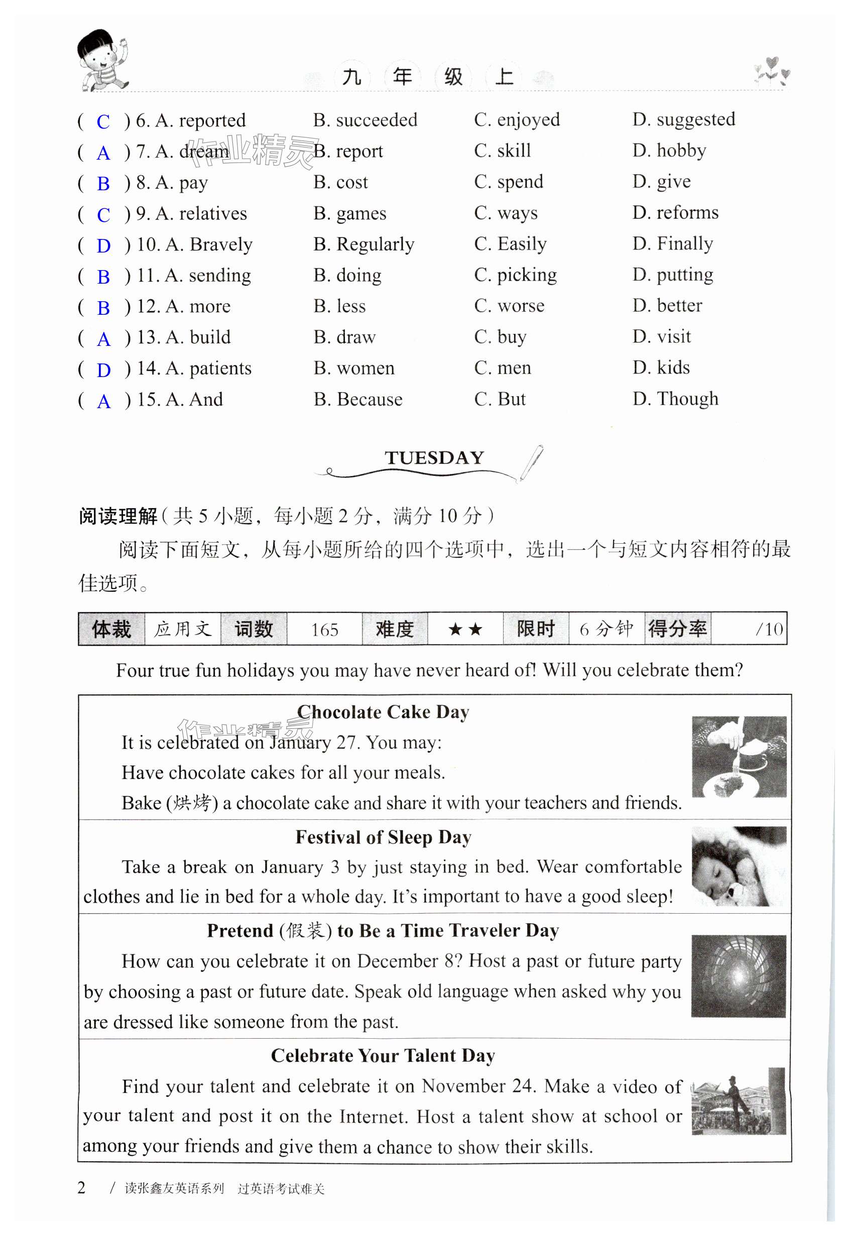 注:目前有些书本章节名称可能整理的还不是很完善,但都是按照顺序排列的,请同学们按照顺序仔细查找。练习册 2024年新目标英语阅读训练九年级上册仁爱版 答案主要是用来给同学们做完题方便对答案用的,请勿直接抄袭。