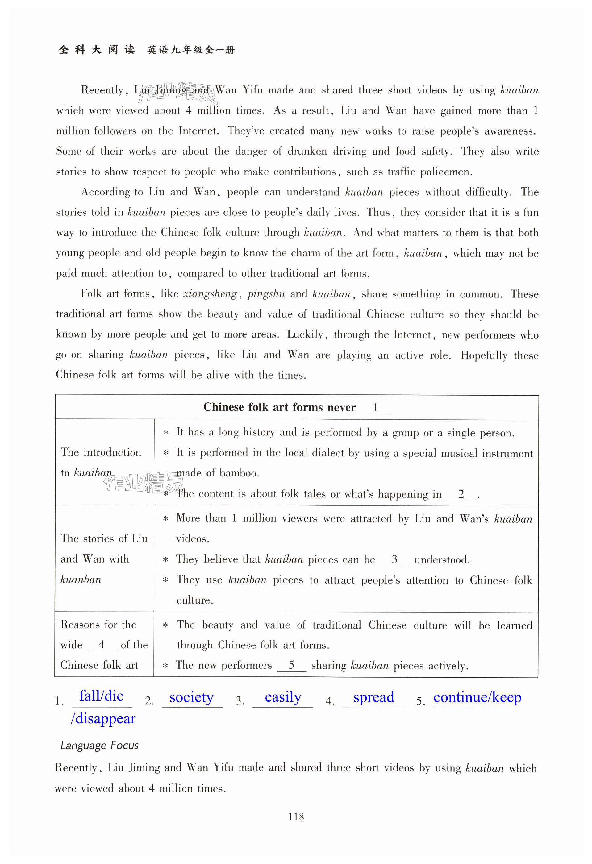 注:目前有些书本章节名称可能整理的还不是很完善,但都是按照顺序排列的,请同学们按照顺序仔细查找。练习册 2024年全科大阅读九年级英语全一册译林版 答案主要是用来给同学们做完题方便对答案用的,请勿直接抄袭。