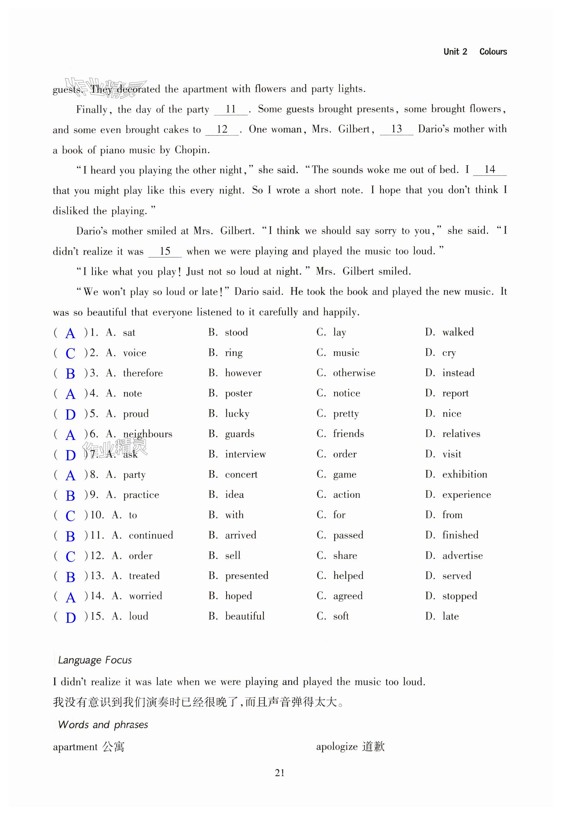 注:目前有些书本章节名称可能整理的还不是很完善,但都是按照顺序排列的,请同学们按照顺序仔细查找。练习册 2024年全科大阅读九年级英语全一册译林版 答案主要是用来给同学们做完题方便对答案用的,请勿直接抄袭。