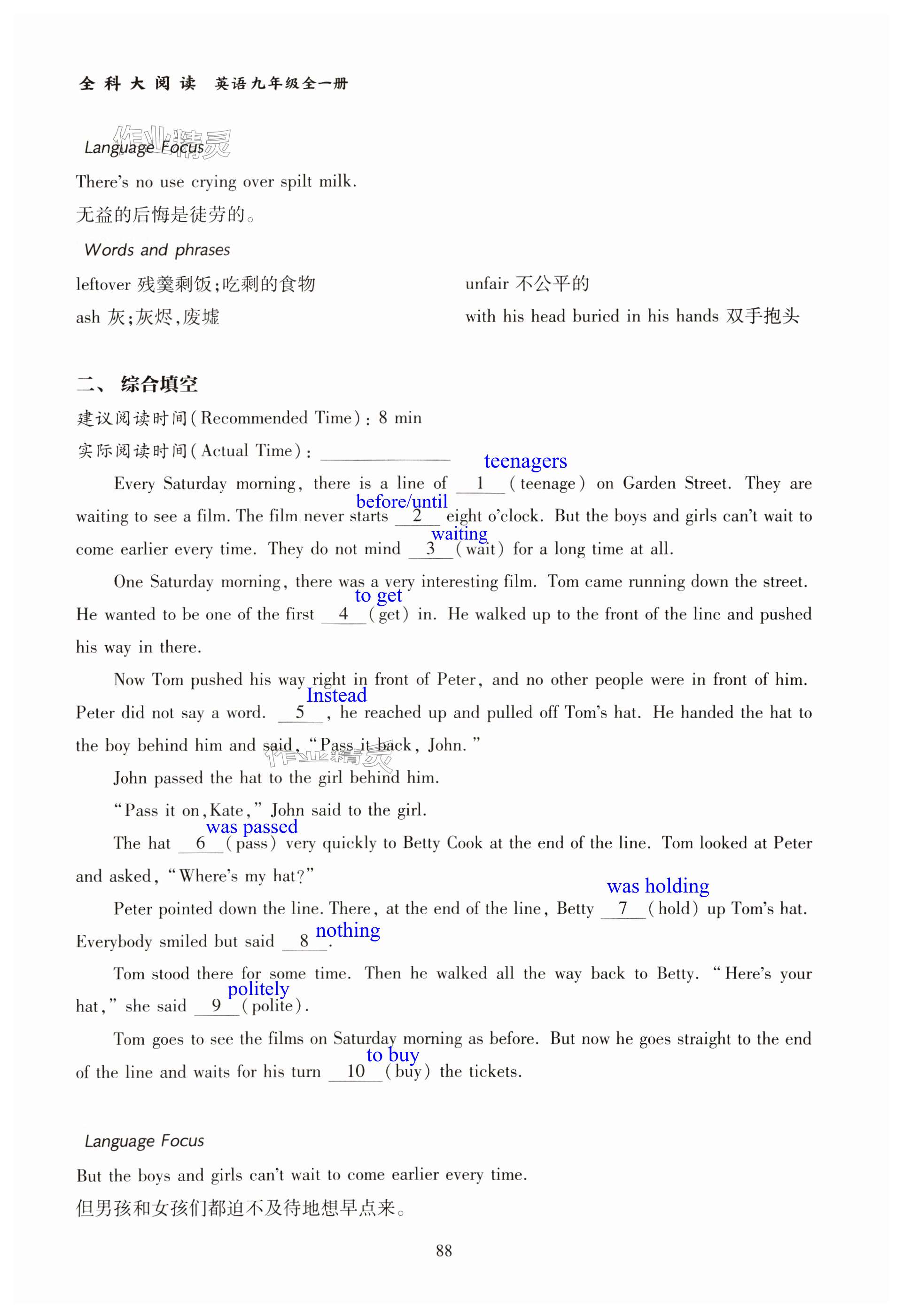 注:目前有些书本章节名称可能整理的还不是很完善,但都是按照顺序排列的,请同学们按照顺序仔细查找。练习册 2024年全科大阅读九年级英语全一册译林版 答案主要是用来给同学们做完题方便对答案用的,请勿直接抄袭。