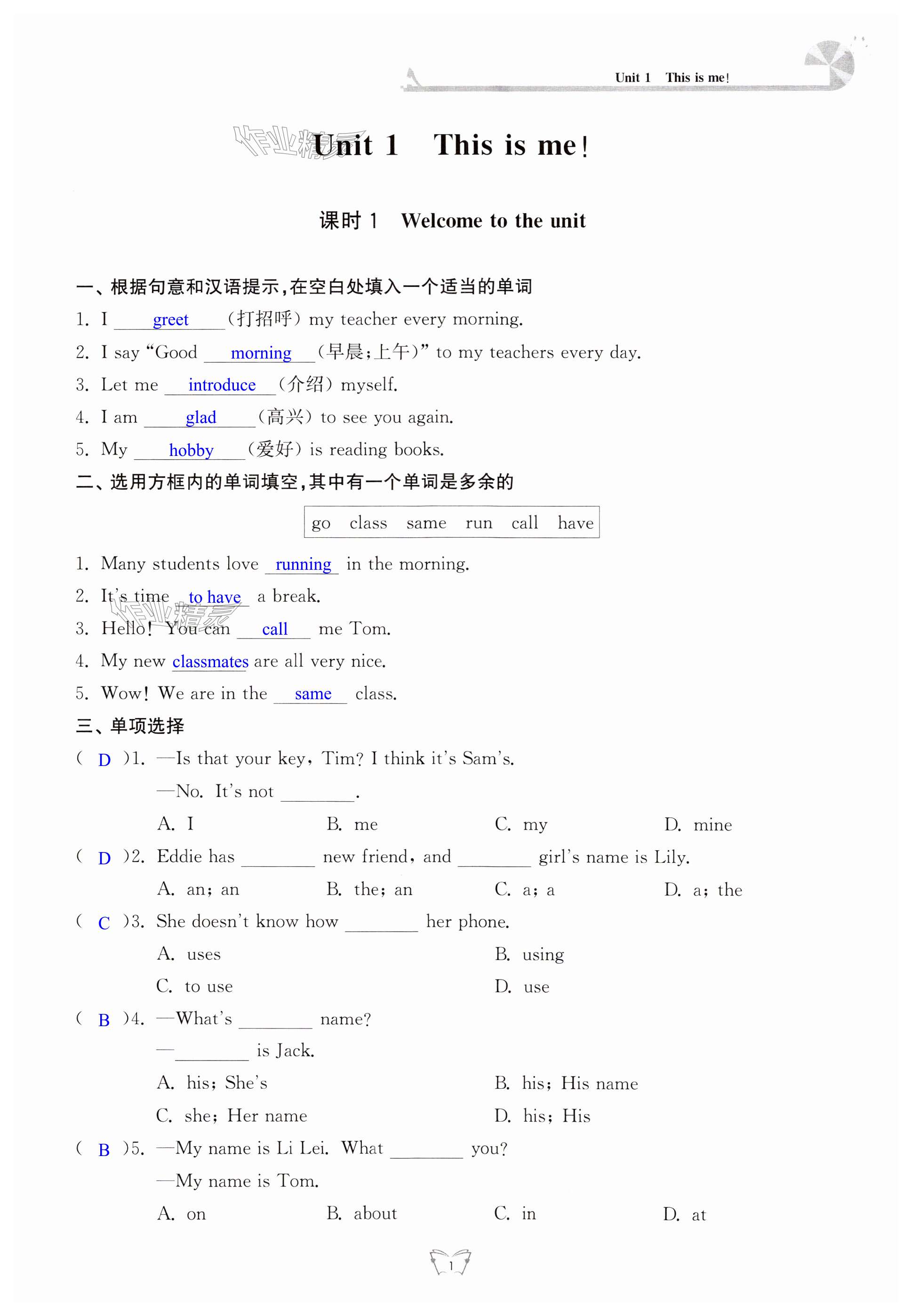 注:目前有些书本章节名称可能整理的还不是很完善,但都是按照顺序排列的,请同学们按照顺序仔细查找。练习册2024年创新课时作业本江苏凤凰少年儿童出版社七年级英语上册译林版答案主要是用来给同学们做完题方便对答案用的,请勿直接抄袭。