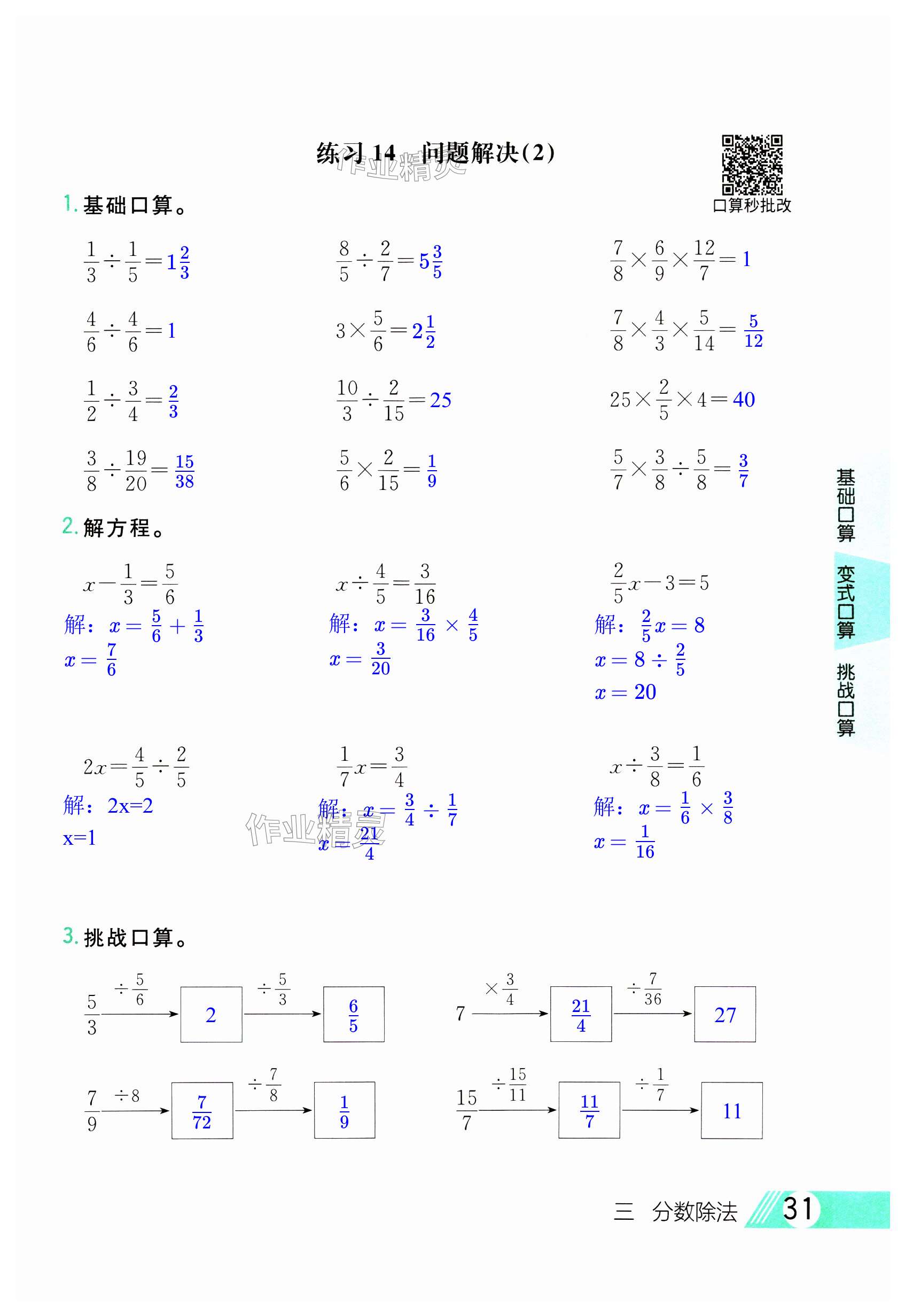 注:目前有些书本章节名称可能整理的还不是很完善,但都是按照顺序排列的,请同学们按照顺序仔细查找。练习册 2024年每日10分钟口算题卡六年级数学上册西师大版 答案主要是用来给同学们做完题方便对答案用的,请勿直接抄袭。