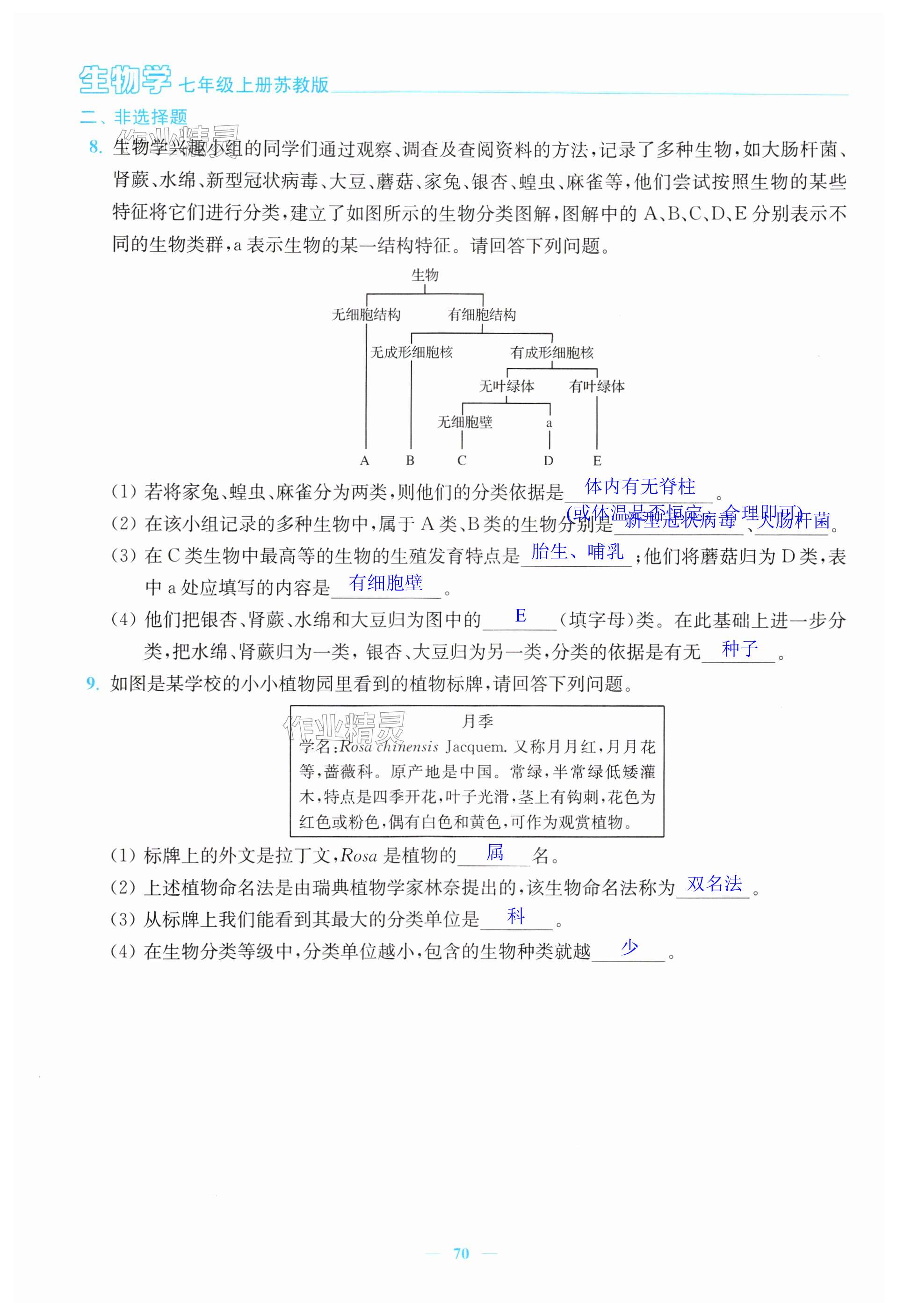注:目前有些书本章节名称可能整理的还不是很完善,但都是按照顺序排列的,请同学们按照顺序仔细查找。练习册 2024年南通小题课时作业本七年级生物上册苏教版 答案主要是用来给同学们做完题方便对答案用的,请勿直接抄袭。