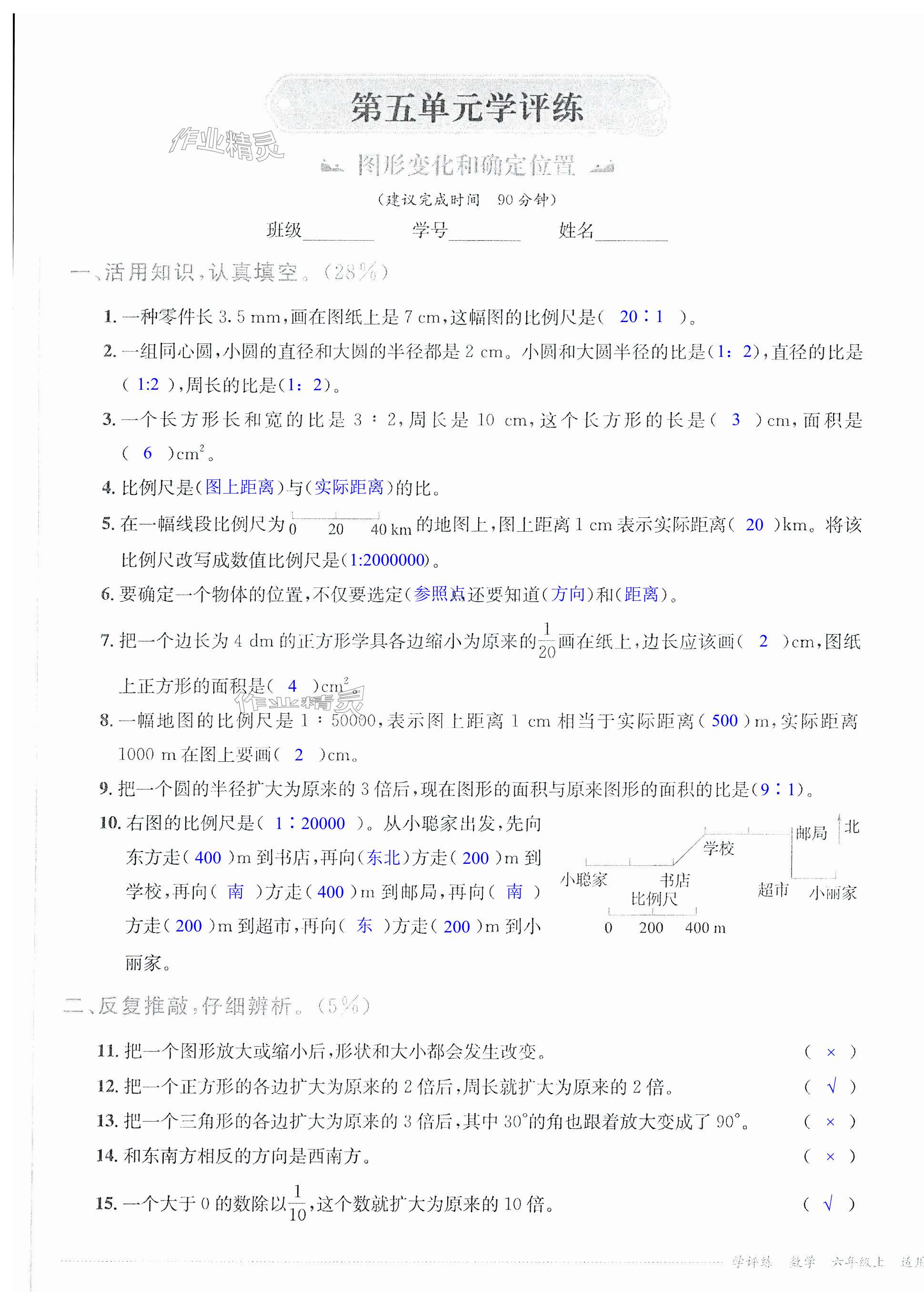 注:目前有些书本章节名称可能整理的还不是很完善,但都是按照顺序排列的,请同学们按照顺序仔细查找。练习册 2024年学评练六年级数学上册西师大版 答案主要是用来给同学们做完题方便对答案用的,请勿直接抄袭。