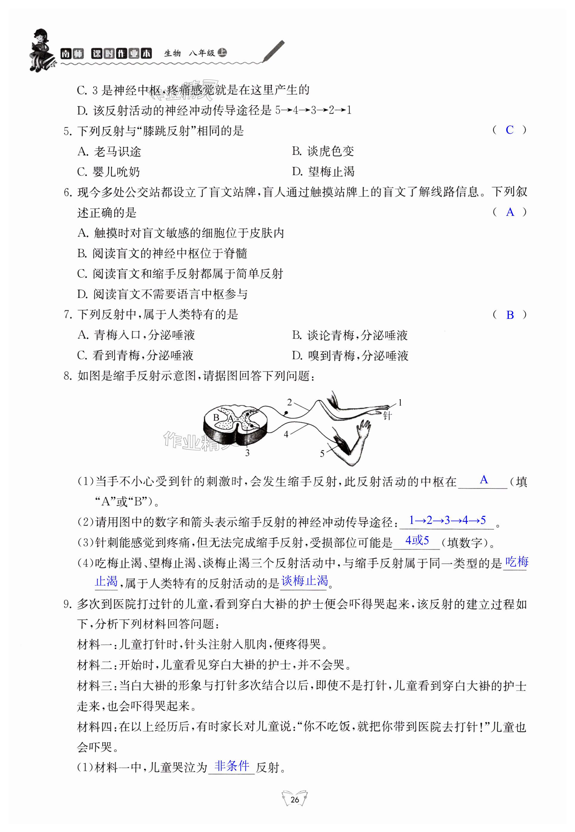 注:目前有些书本章节名称可能整理的还不是很完善,但都是按照顺序排列的,请同学们按照顺序仔细查找。练习册 2024年创新课时作业本江苏凤凰少年儿童出版社八年级生物上册苏科版 答案主要是用来给同学们做完题方便对答案用的,请勿直接抄袭。