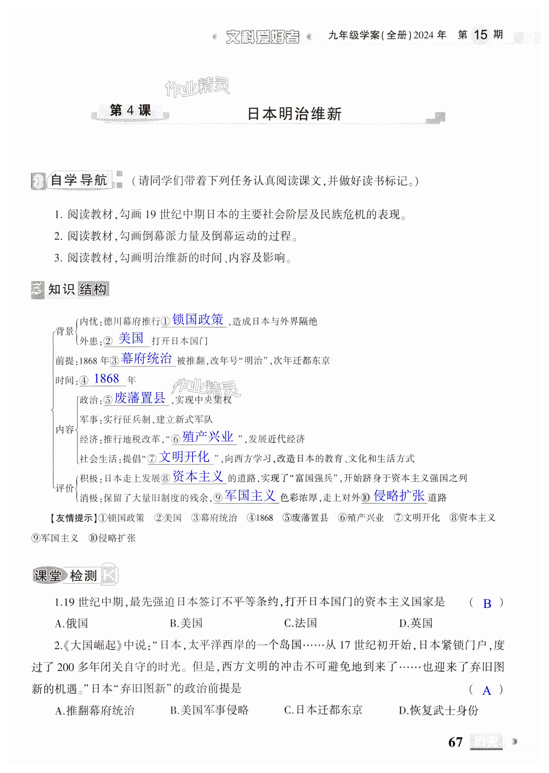 注:目前有些书本章节名称可能整理的还不是很完善,但都是按照顺序排列的,请同学们按照顺序仔细查找。练习册 2024年文科爱好者九年级历史全一册人教版第15期 答案主要是用来给同学们做完题方便对答案用的,请勿直接抄袭。