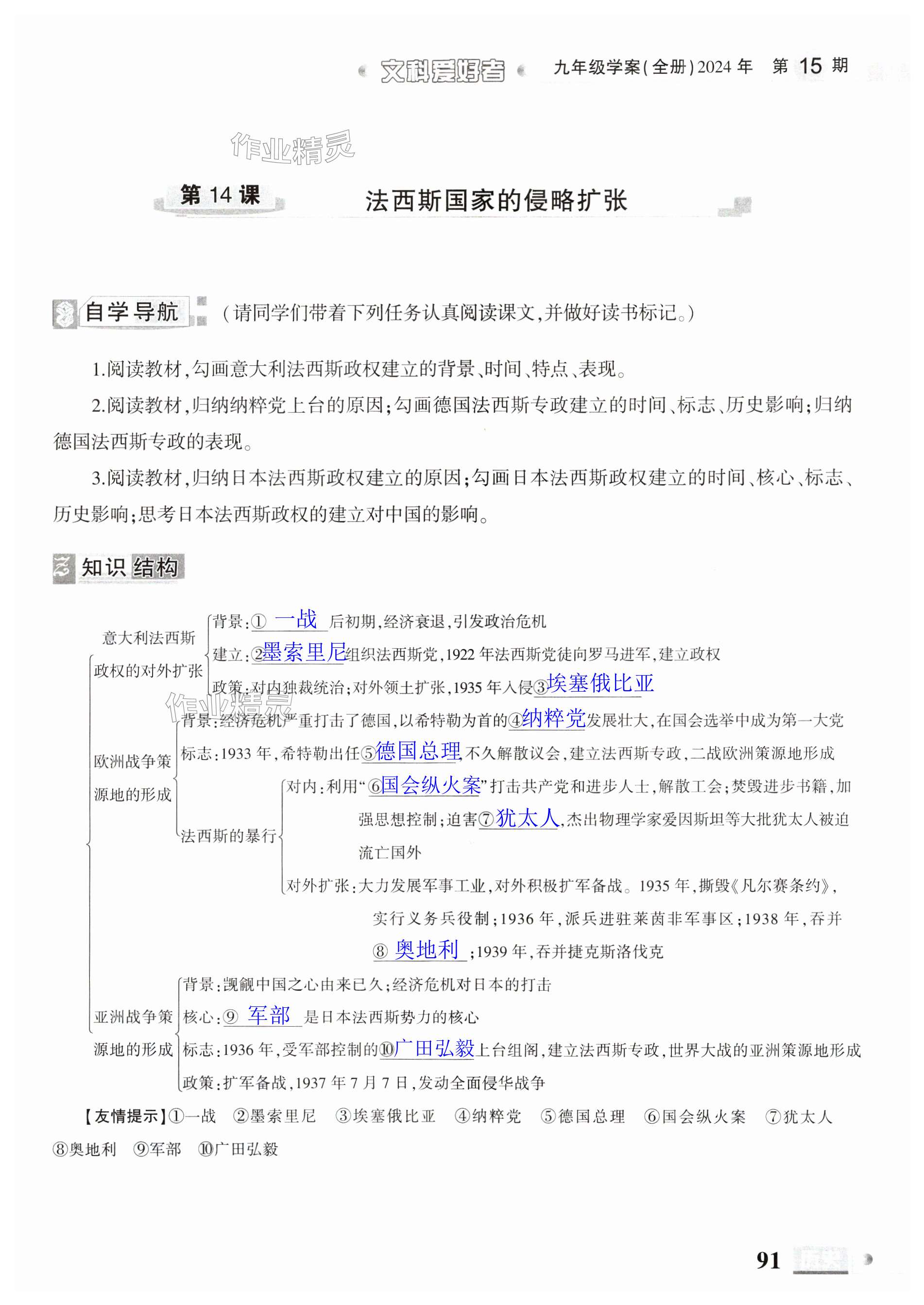 注:目前有些书本章节名称可能整理的还不是很完善,但都是按照顺序排列的,请同学们按照顺序仔细查找。练习册 2024年文科爱好者九年级历史全一册人教版第15期 答案主要是用来给同学们做完题方便对答案用的,请勿直接抄袭。