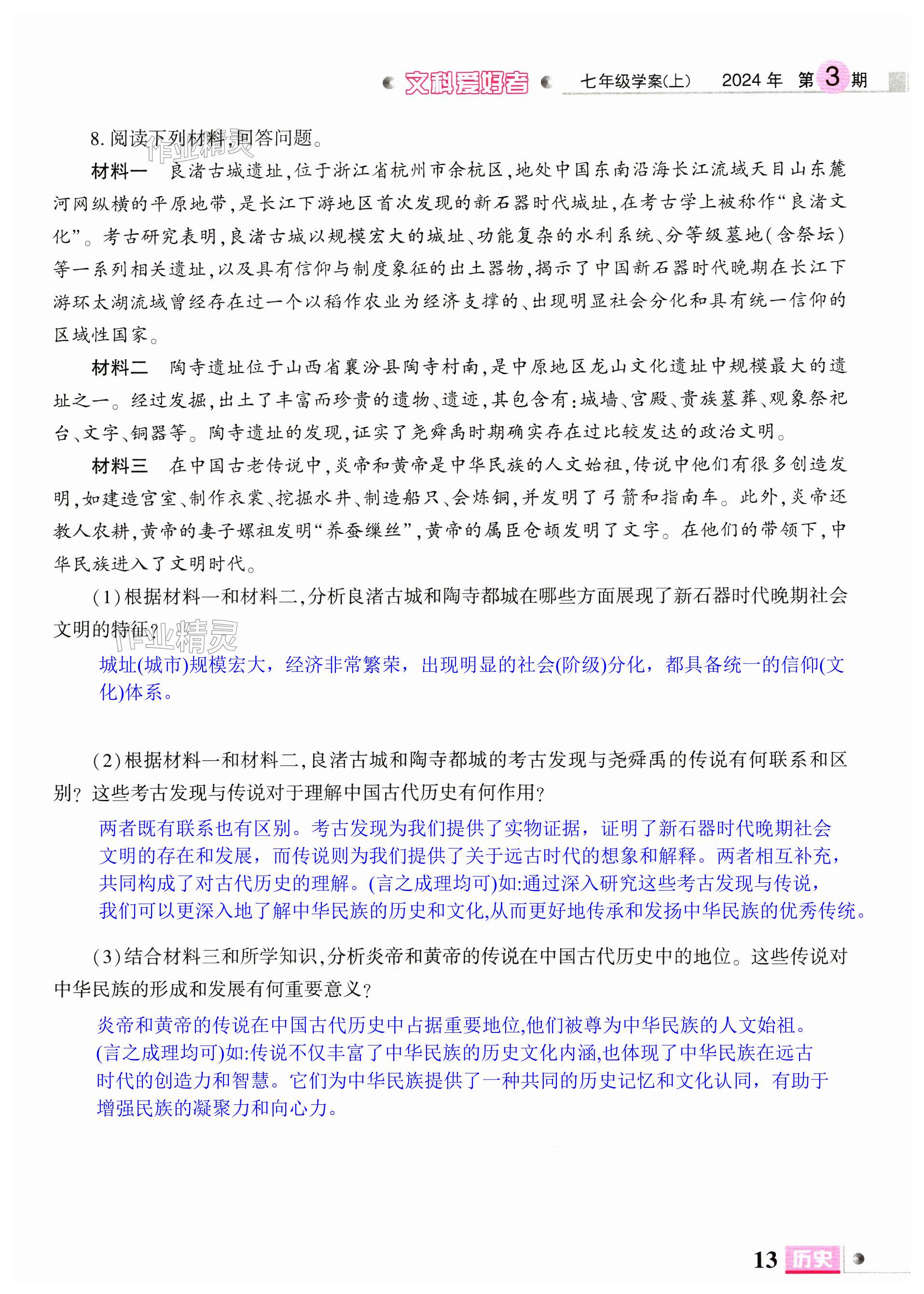 注:目前有些书本章节名称可能整理的还不是很完善,但都是按照顺序排列的,请同学们按照顺序仔细查找。练习册 2024年文科爱好者七年级历史上册人教版第3期 答案主要是用来给同学们做完题方便对答案用的,请勿直接抄袭。