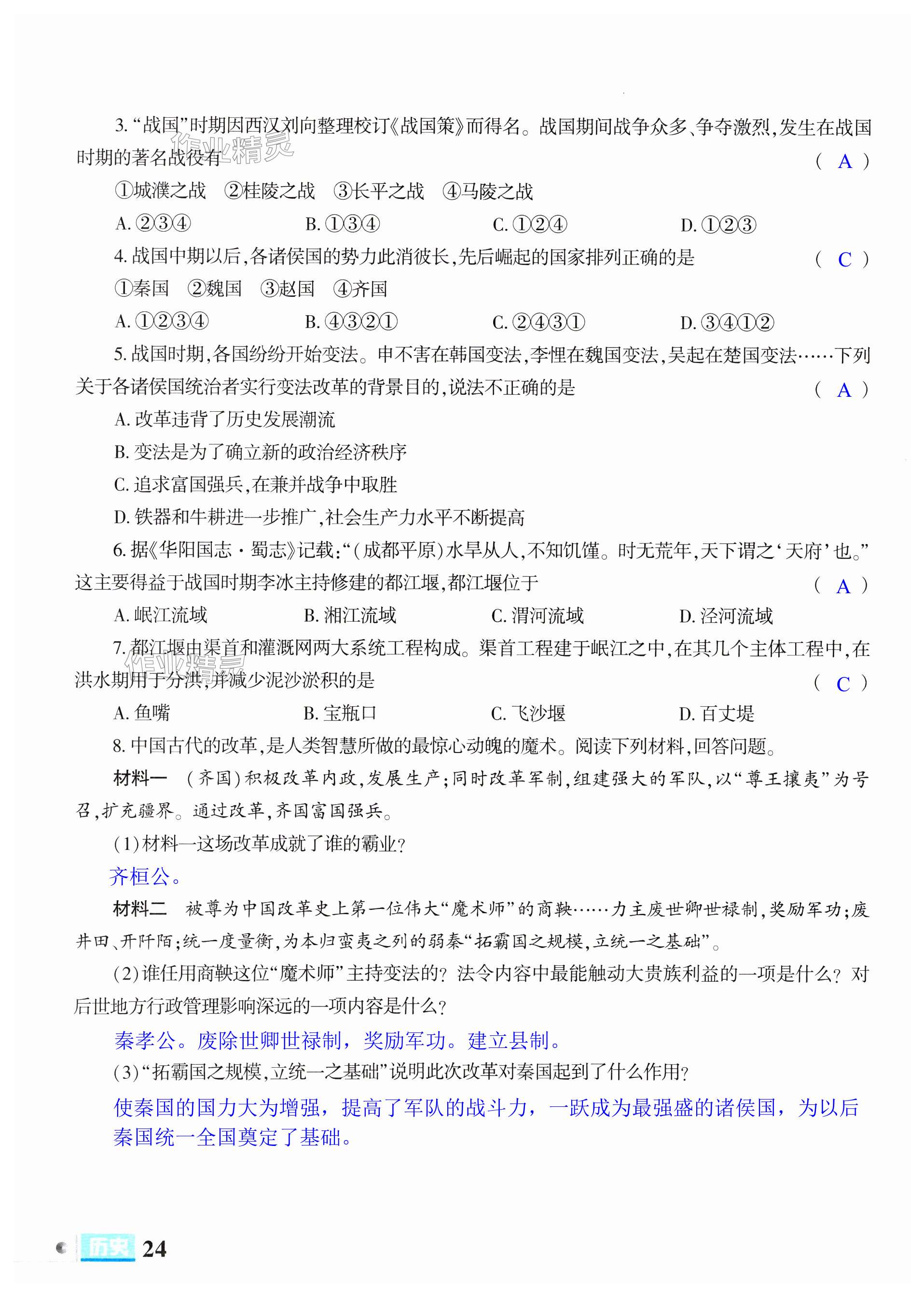 注:目前有些书本章节名称可能整理的还不是很完善,但都是按照顺序排列的,请同学们按照顺序仔细查找。练习册 2024年文科爱好者七年级历史上册人教版第3期 答案主要是用来给同学们做完题方便对答案用的,请勿直接抄袭。
