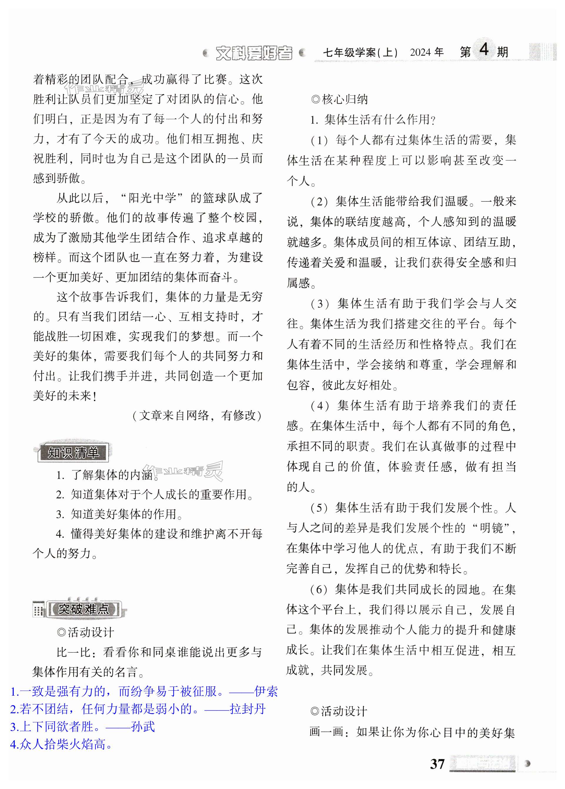 2024年文科爱好者七年级道德与法治上册人教版第4期