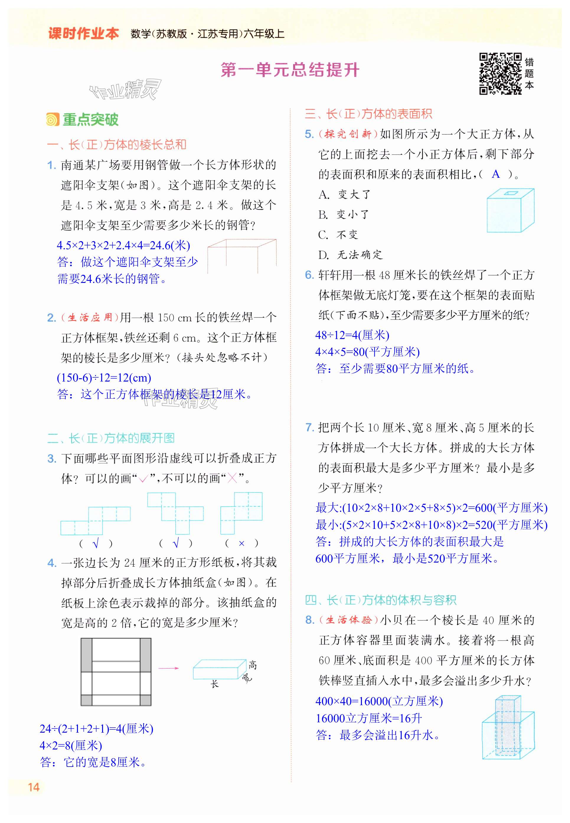 注:目前有些书本章节名称可能整理的还不是很完善,但都是按照顺序排列的,请同学们按照顺序仔细查找。练习册 2024年课时作业本闯关练六年级数学上册苏教版江苏专版 答案主要是用来给同学们做完题方便对答案用的,请勿直接抄袭。