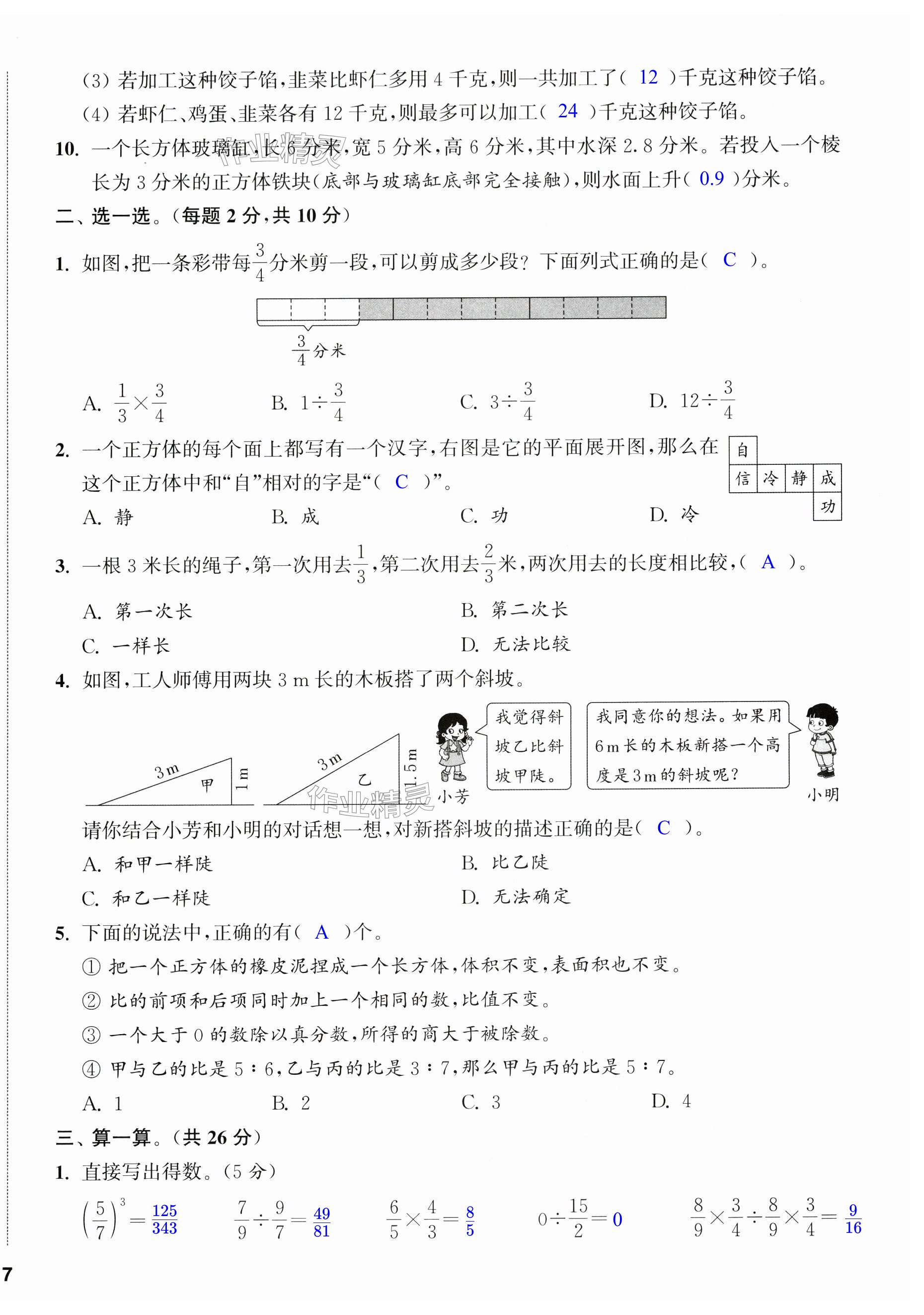 注:目前有些书本章节名称可能整理的还不是很完善,但都是按照顺序排列的,请同学们按照顺序仔细查找。练习册 2024年课时作业本闯关练六年级数学上册苏教版江苏专版 答案主要是用来给同学们做完题方便对答案用的,请勿直接抄袭。