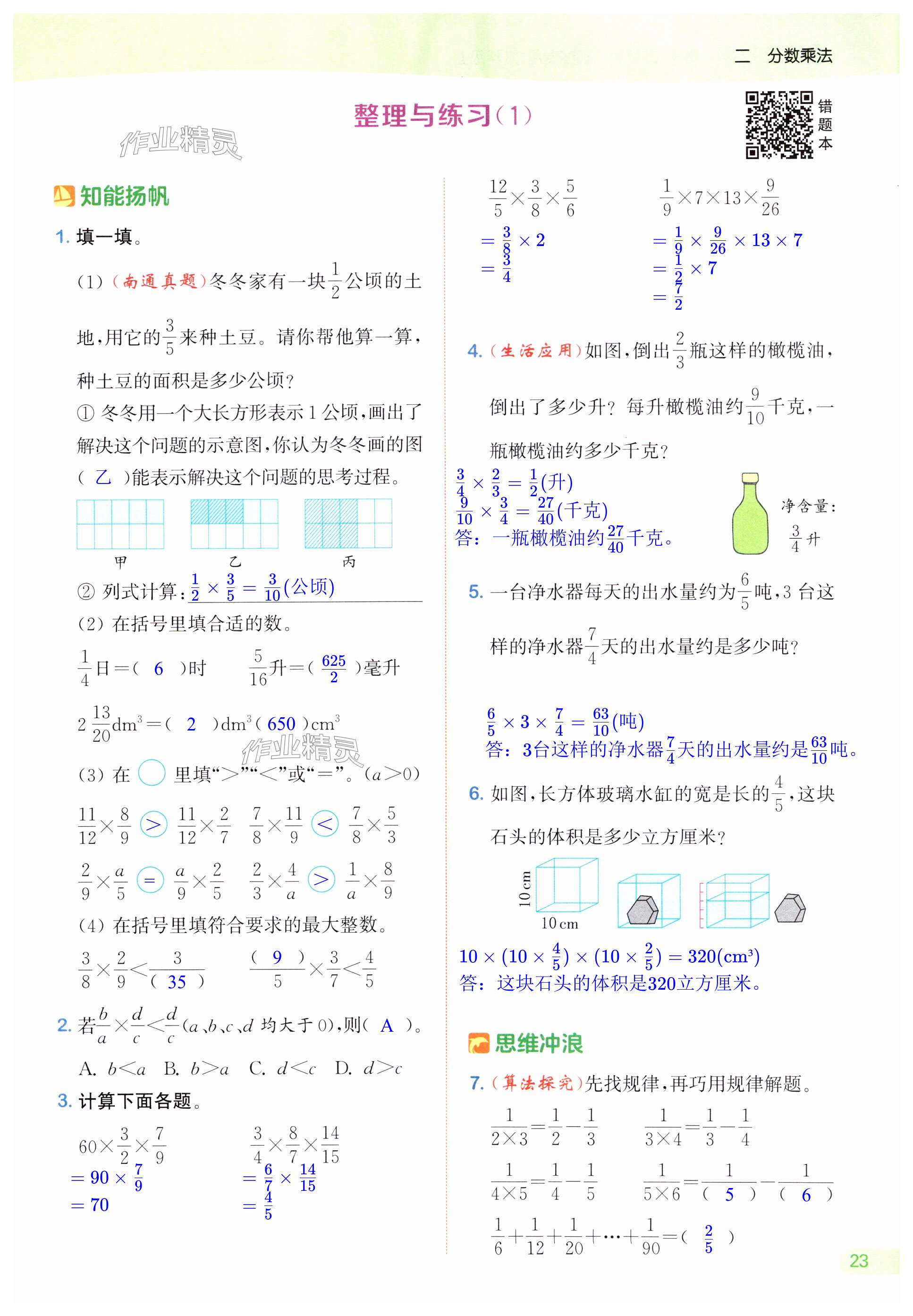注:目前有些书本章节名称可能整理的还不是很完善,但都是按照顺序排列的,请同学们按照顺序仔细查找。练习册 2024年课时作业本闯关练六年级数学上册苏教版江苏专版 答案主要是用来给同学们做完题方便对答案用的,请勿直接抄袭。