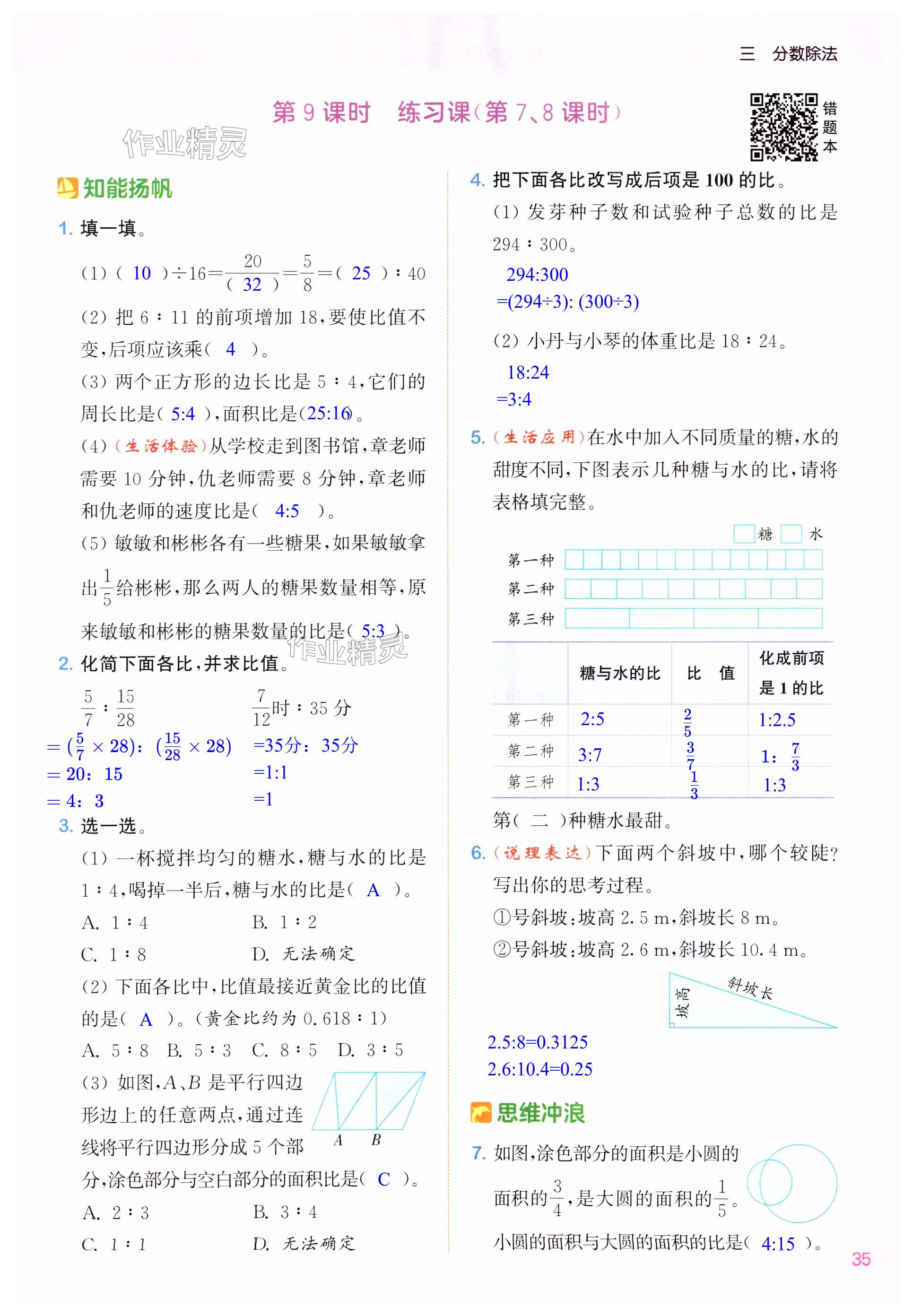 注:目前有些书本章节名称可能整理的还不是很完善,但都是按照顺序排列的,请同学们按照顺序仔细查找。练习册 2024年课时作业本闯关练六年级数学上册苏教版江苏专版 答案主要是用来给同学们做完题方便对答案用的,请勿直接抄袭。