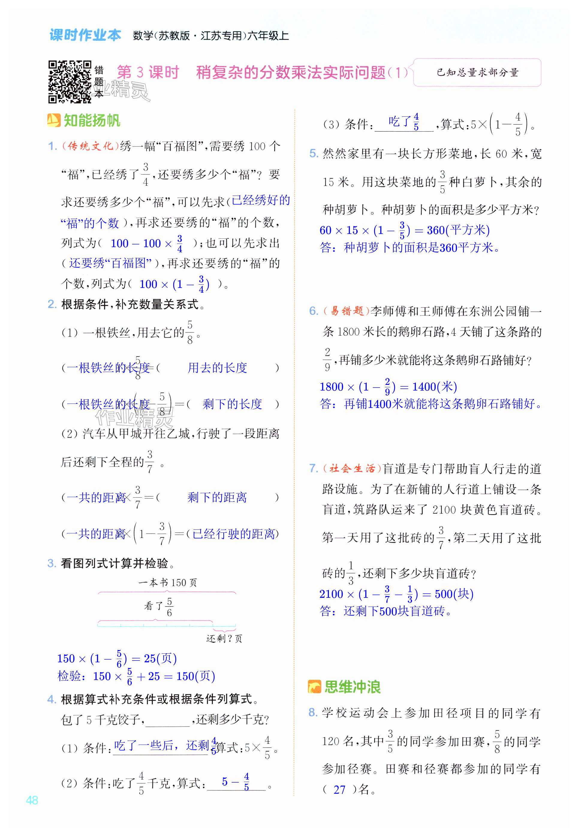 注:目前有些书本章节名称可能整理的还不是很完善,但都是按照顺序排列的,请同学们按照顺序仔细查找。练习册 2024年课时作业本闯关练六年级数学上册苏教版江苏专版 答案主要是用来给同学们做完题方便对答案用的,请勿直接抄袭。