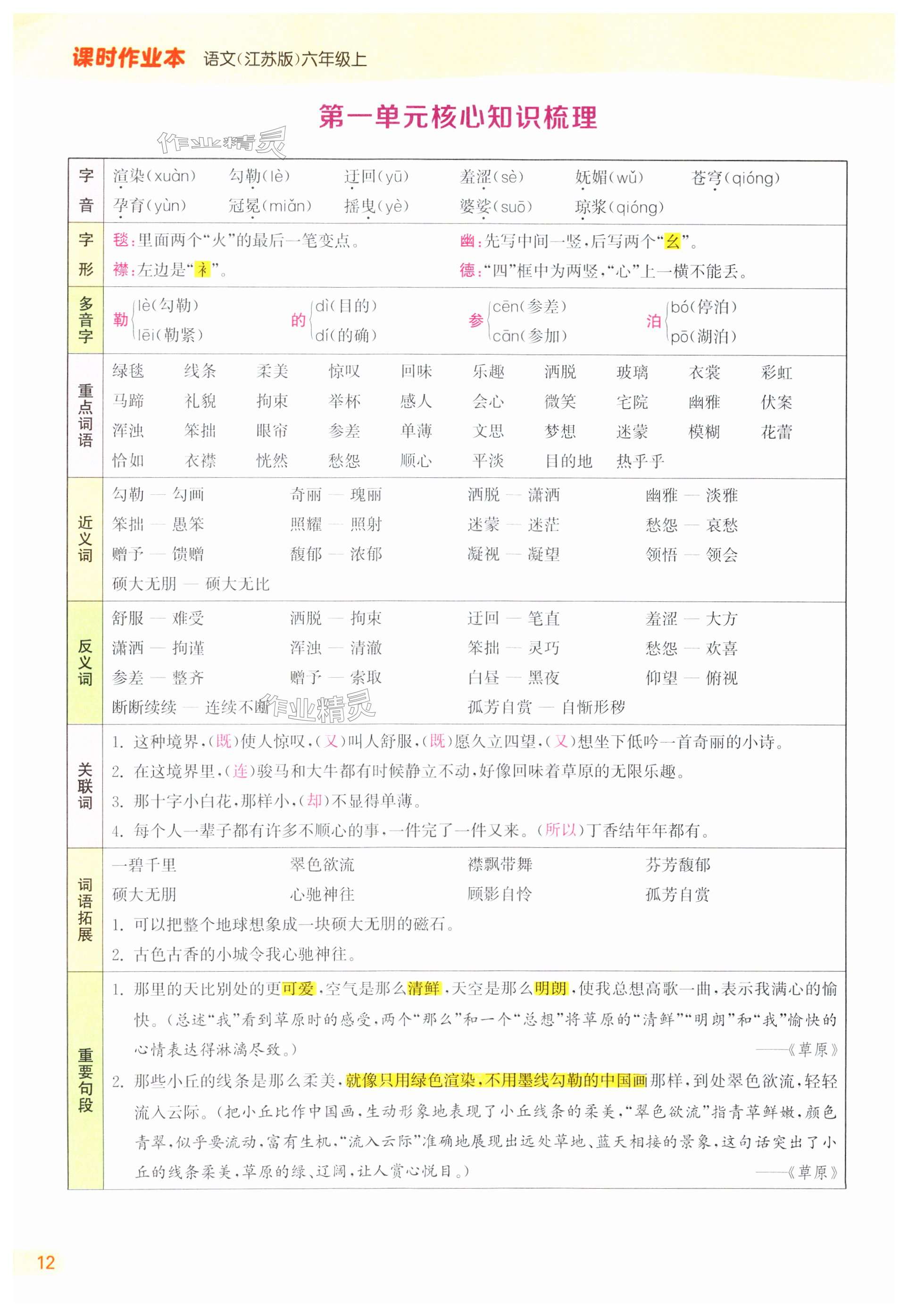 2024年课时作业本闯关练六年级语文上册人教版江苏专版